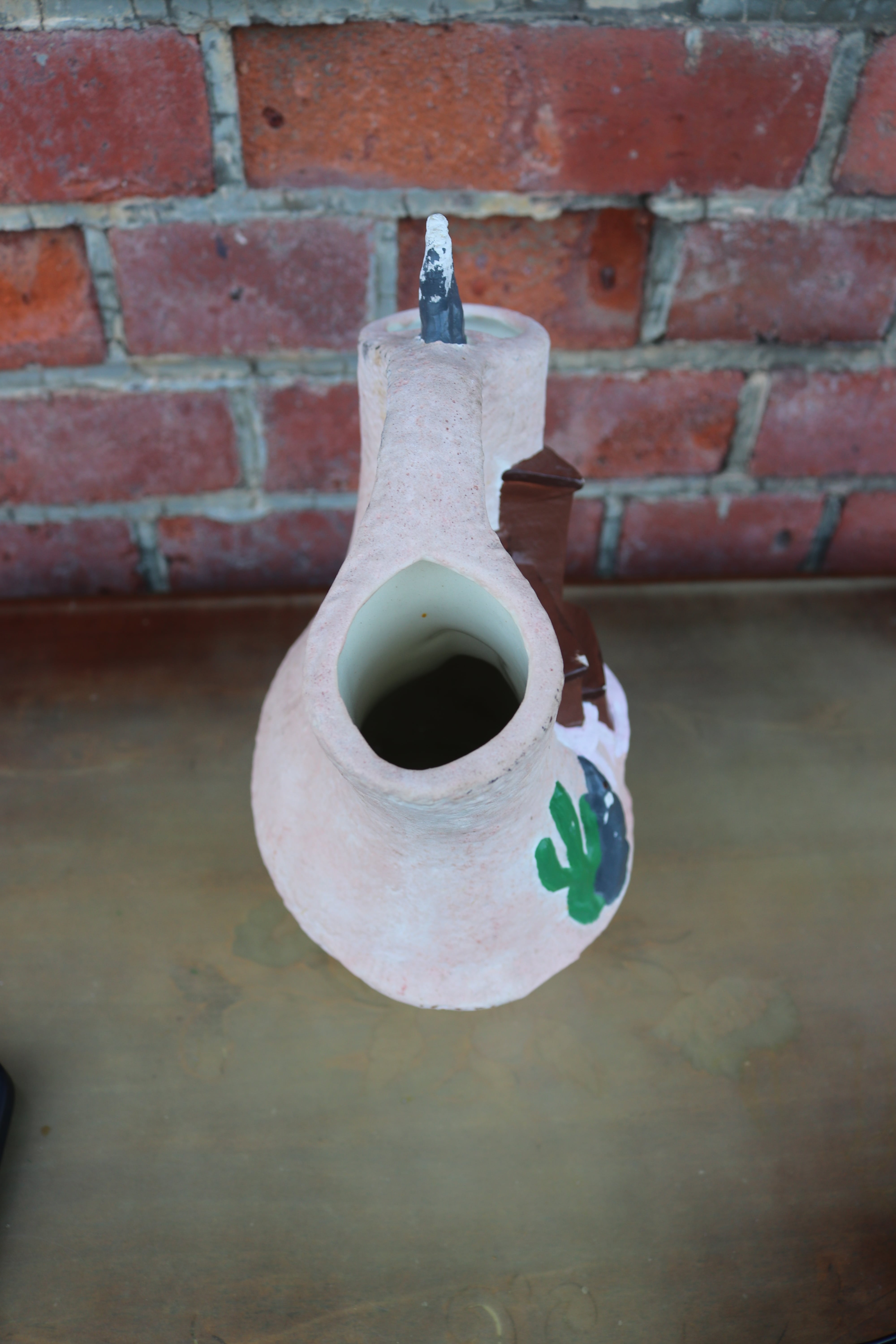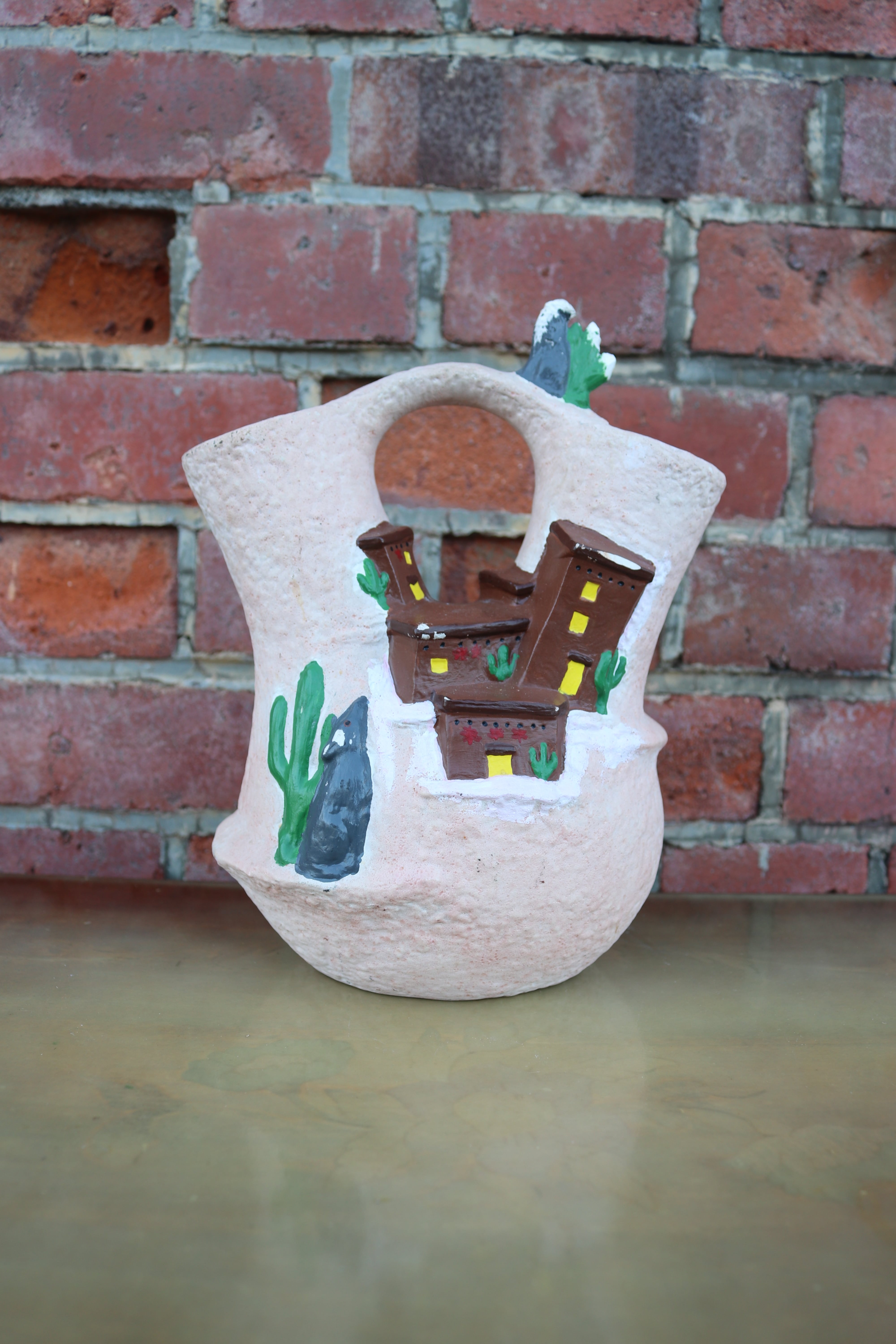 アメリカ南西部の風景を描いたデコレーションジャグ。