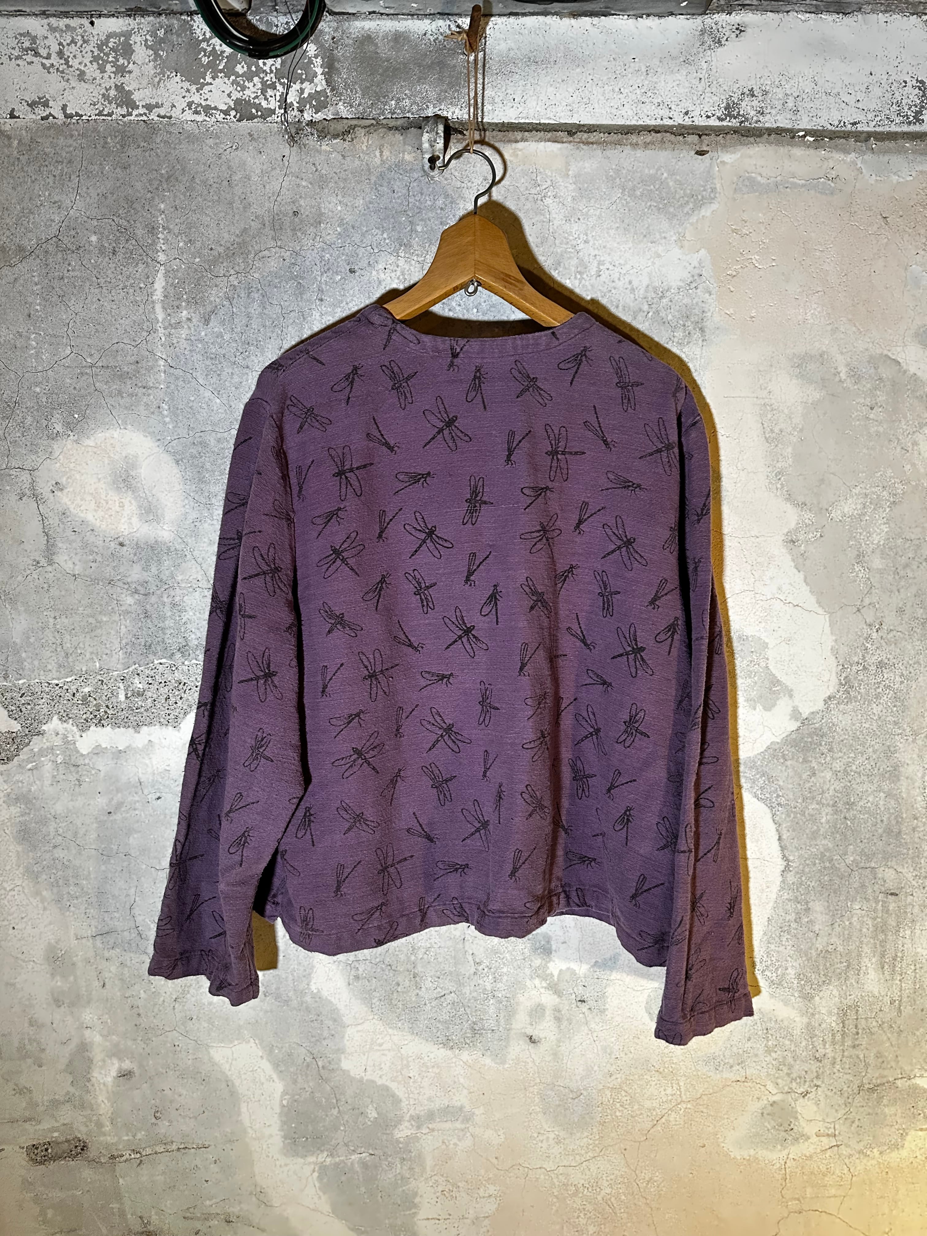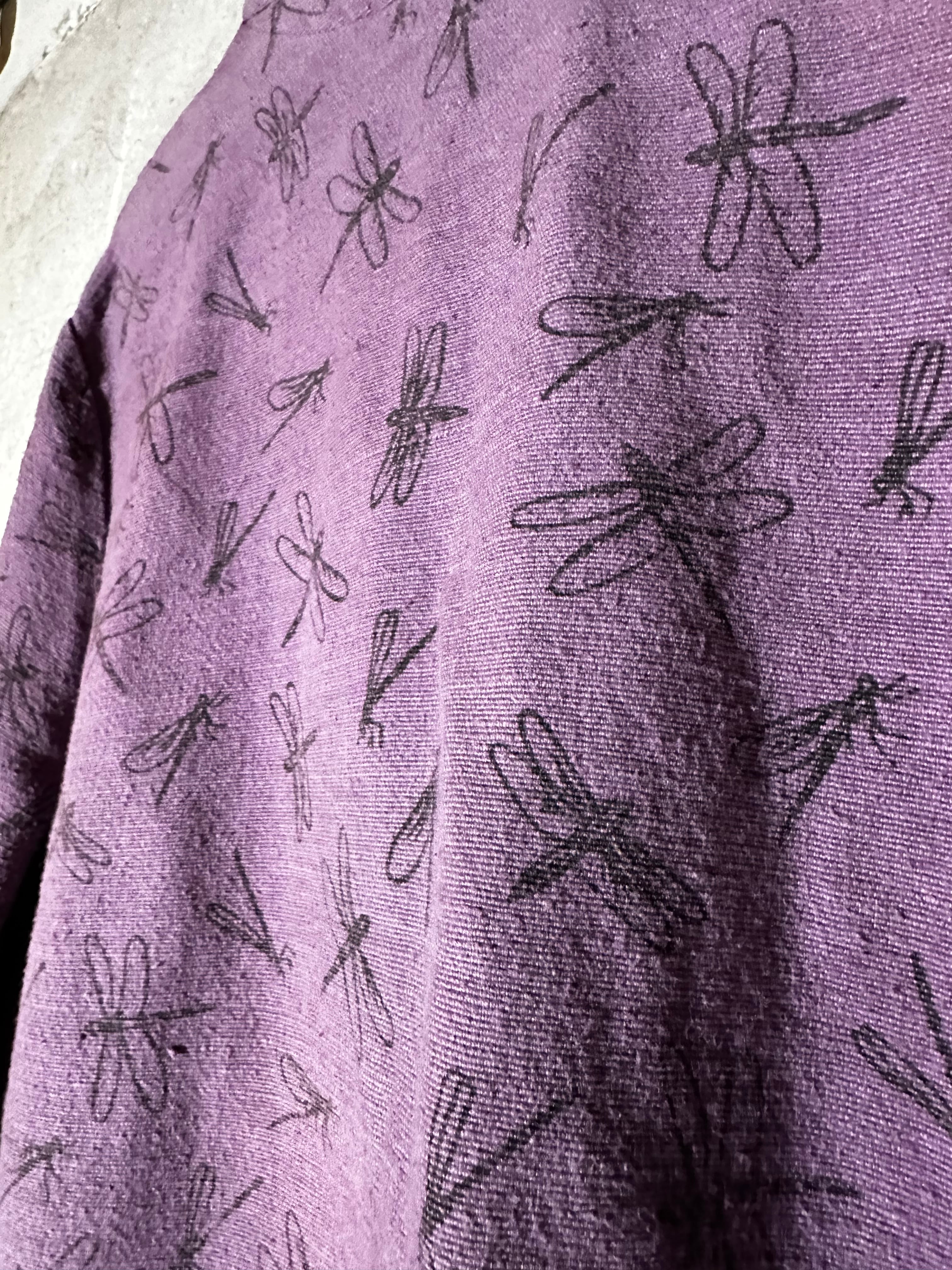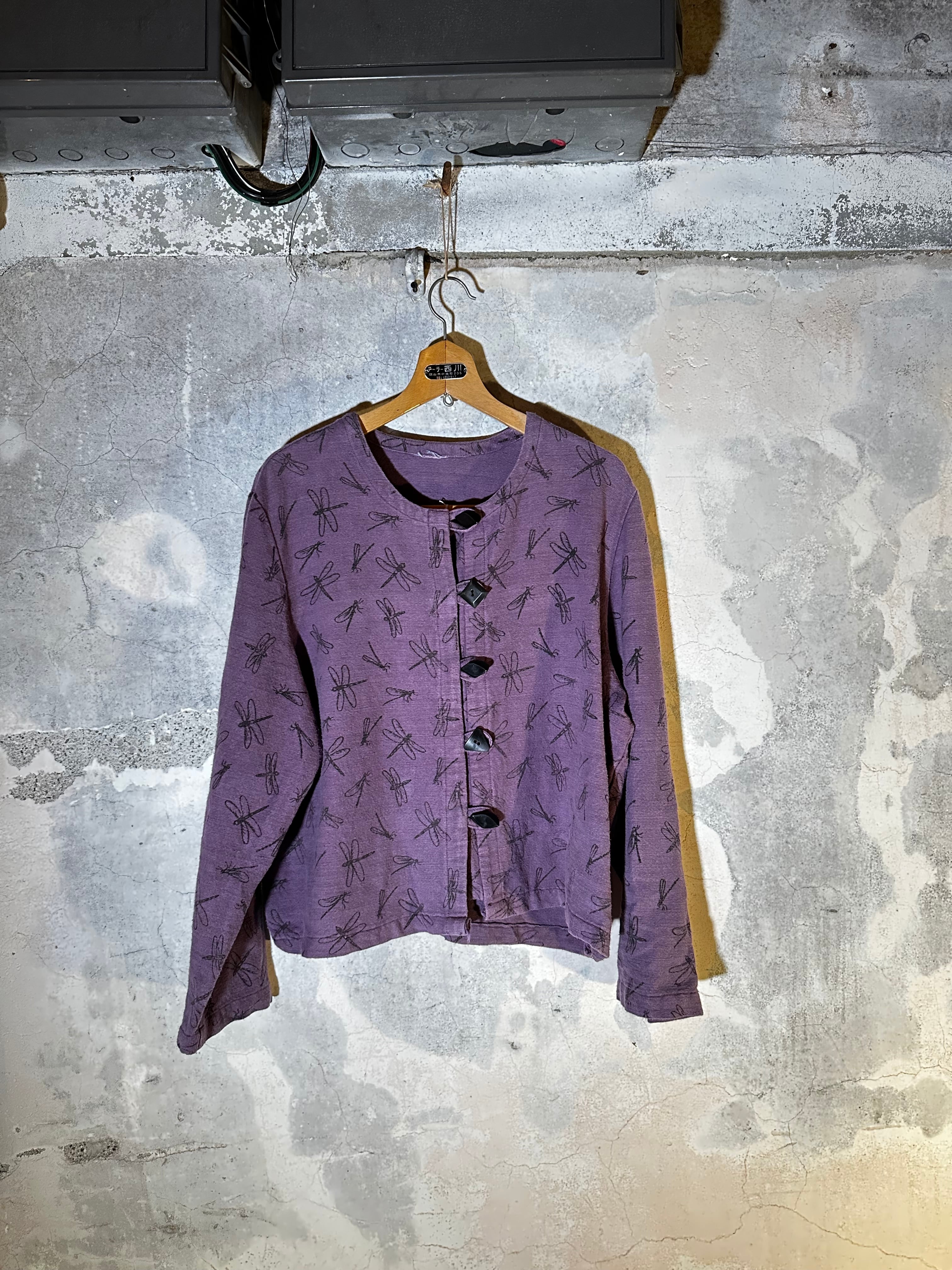 全体にトンボのハンドプリントが施された、どこかあたたかみのある一着です。