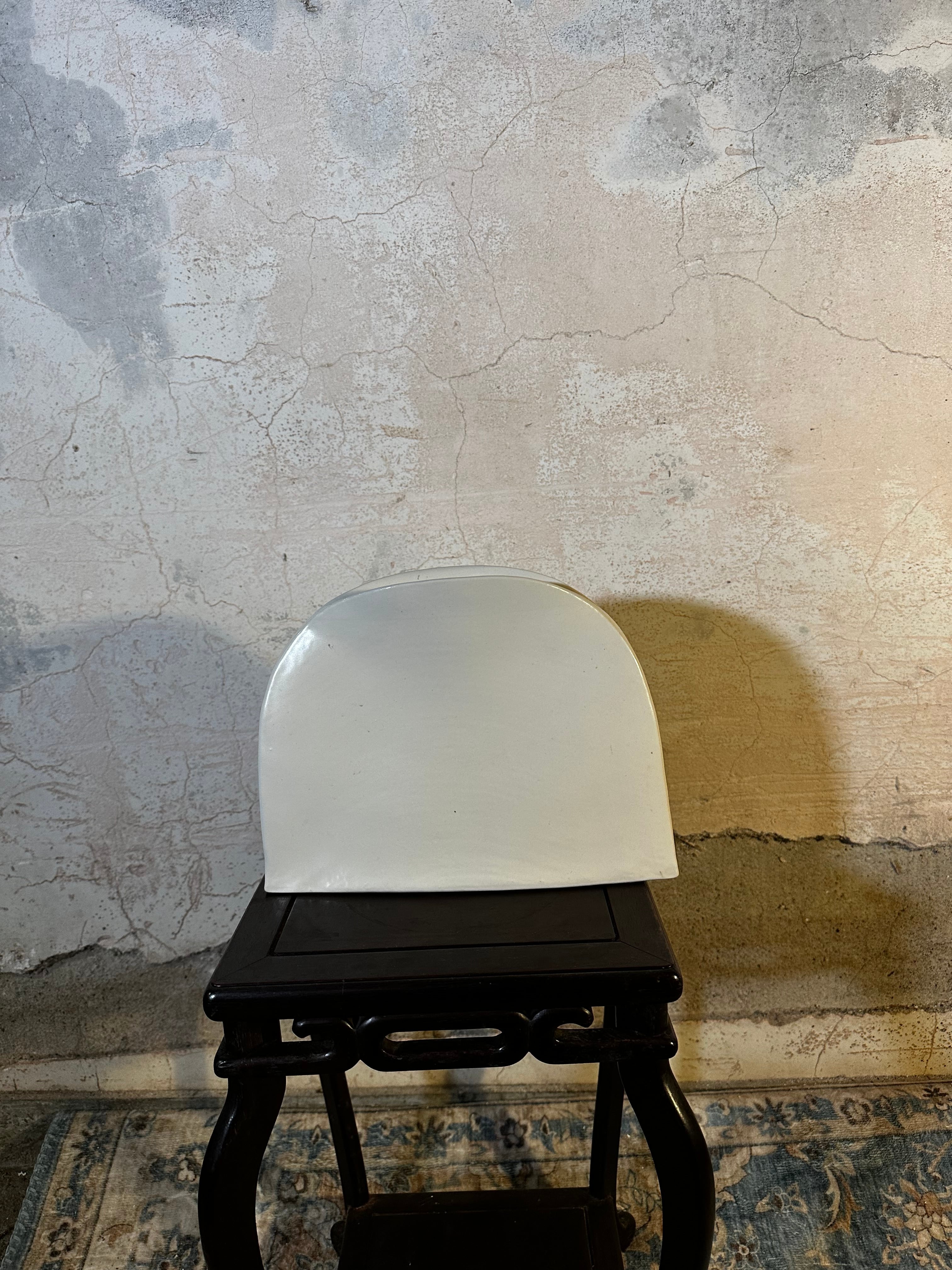 緩やかに丸みを帯びたフォルムと、側面にかけて絞られたV字の口。