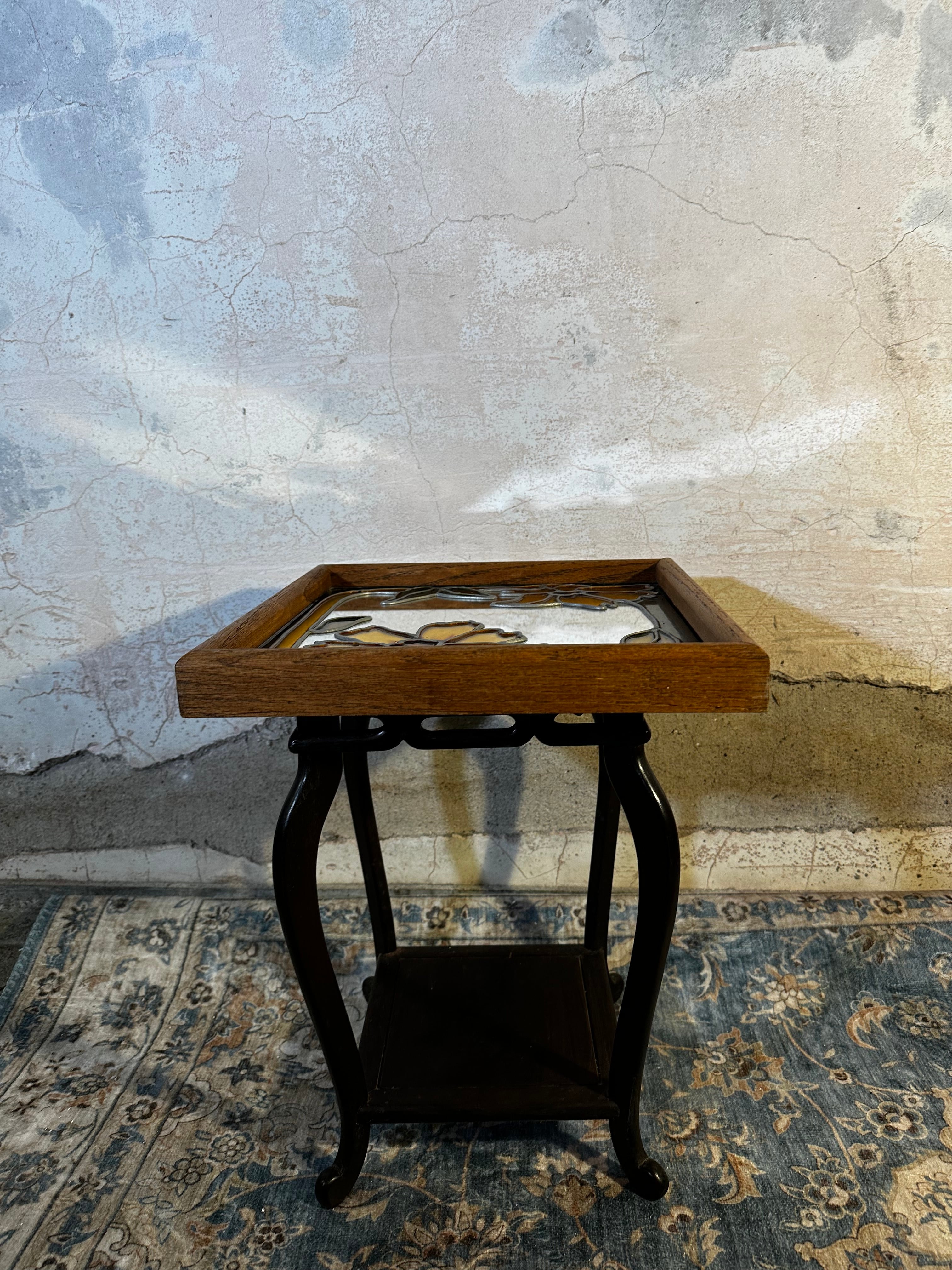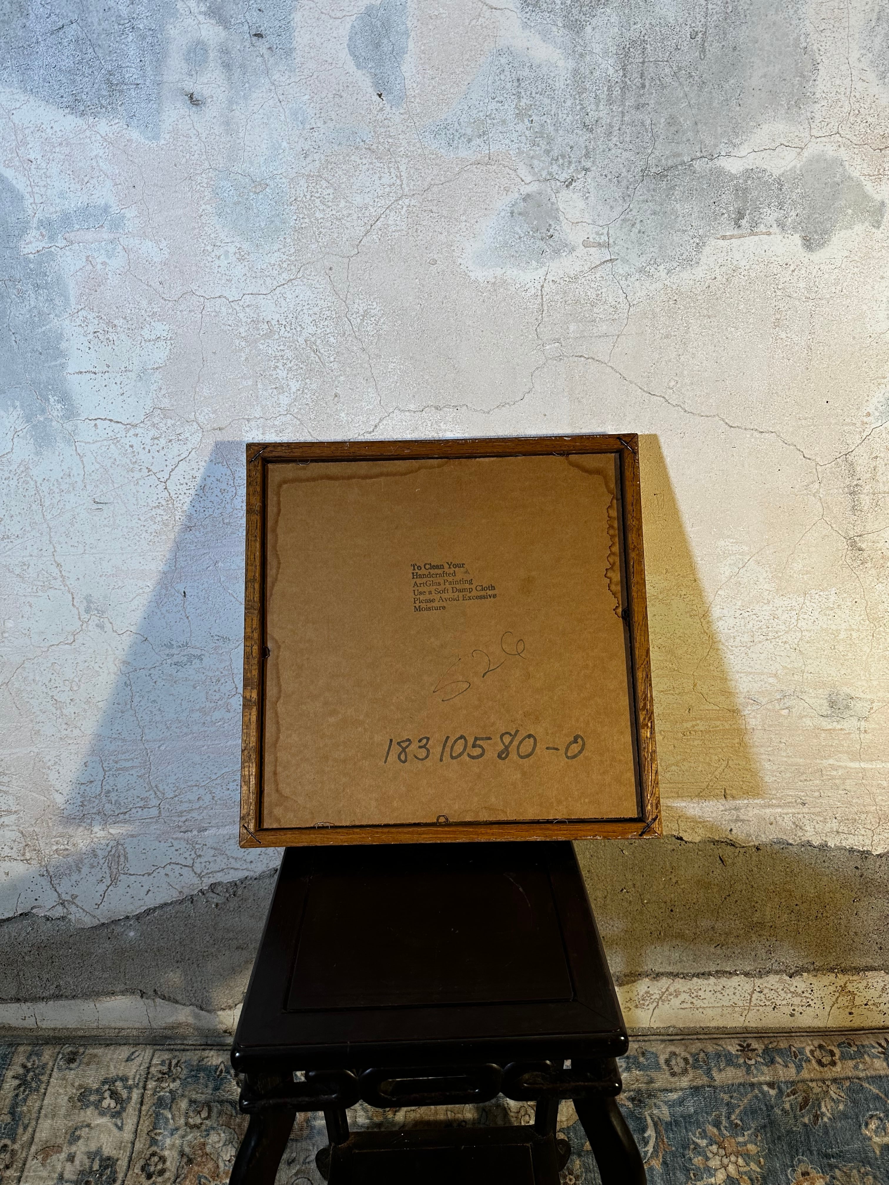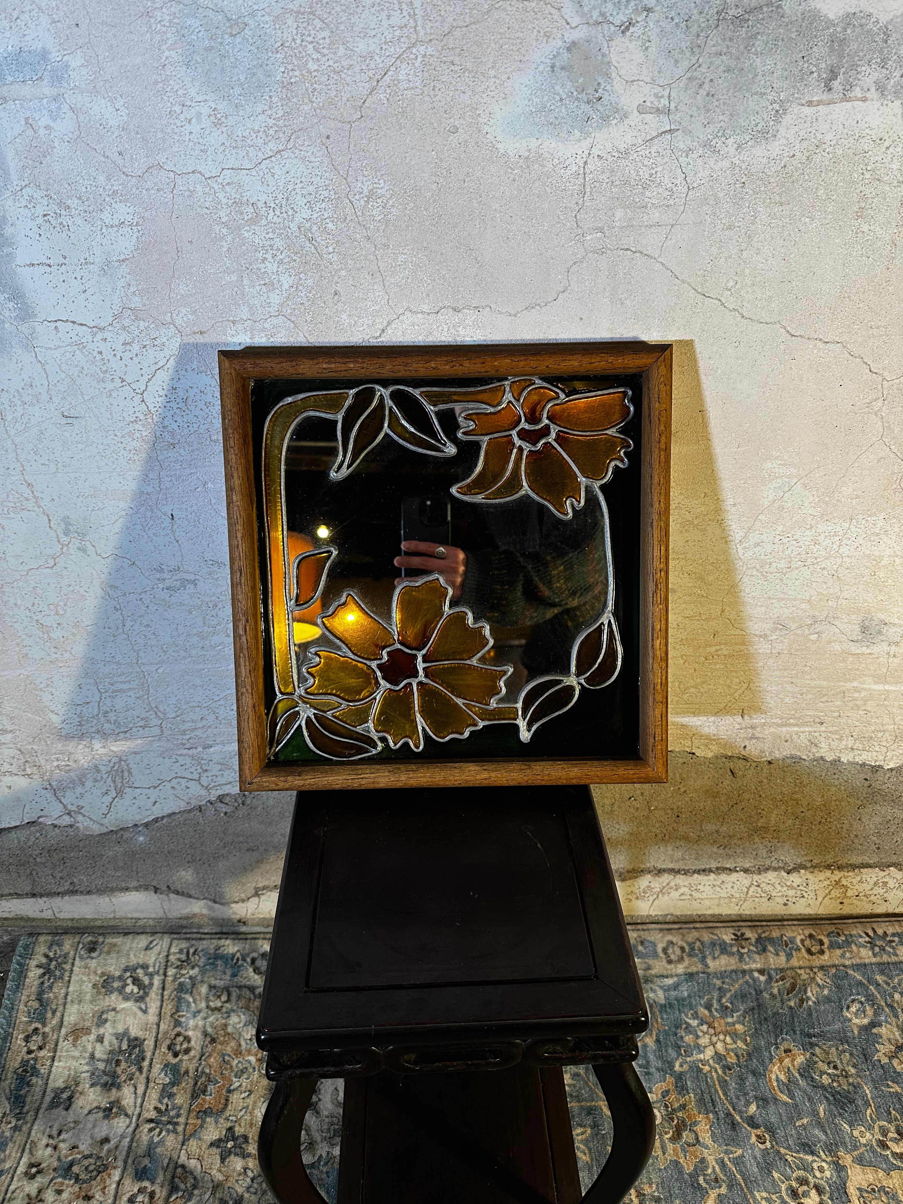 ステンドグラス調の花模様が描かれたガラスアートフレーム。