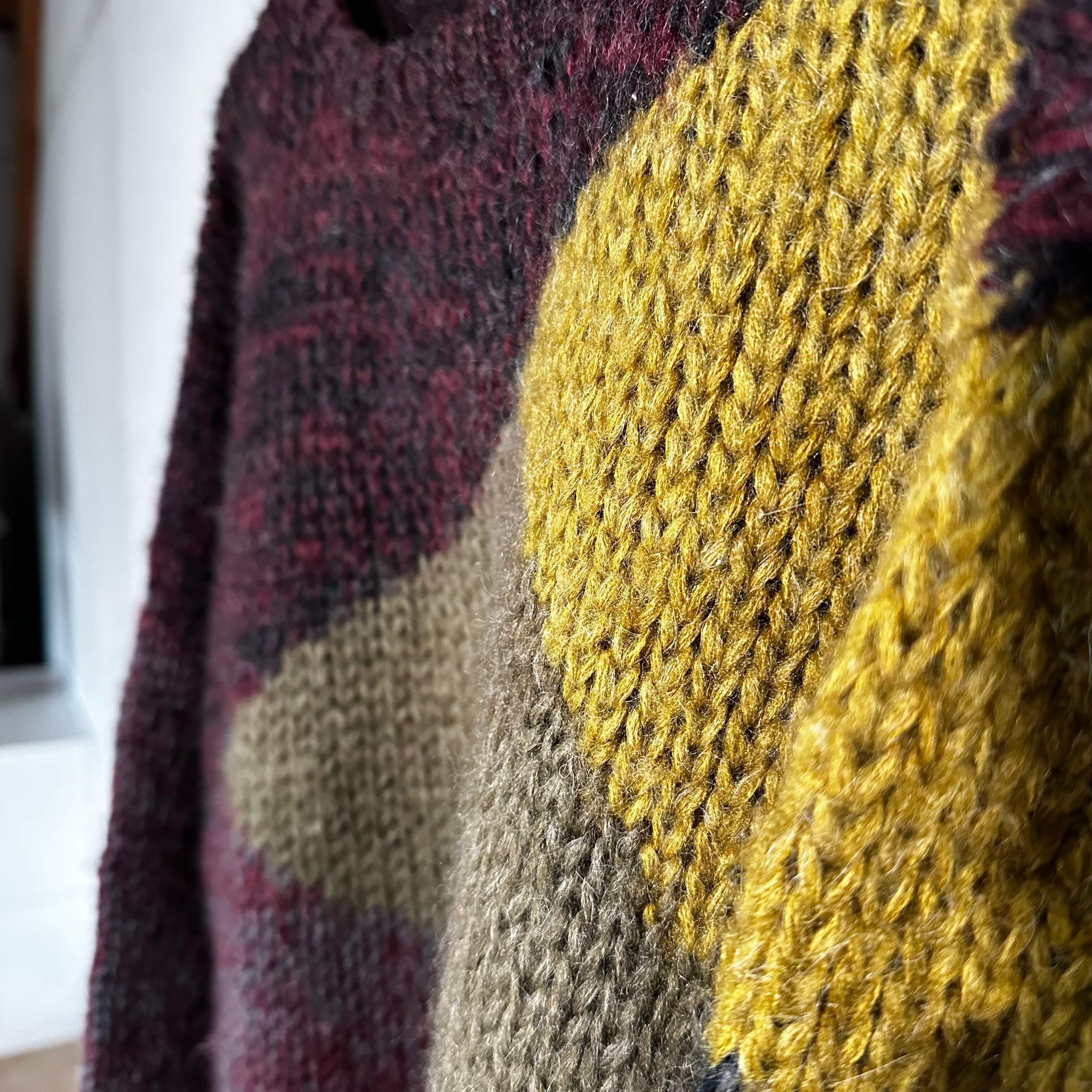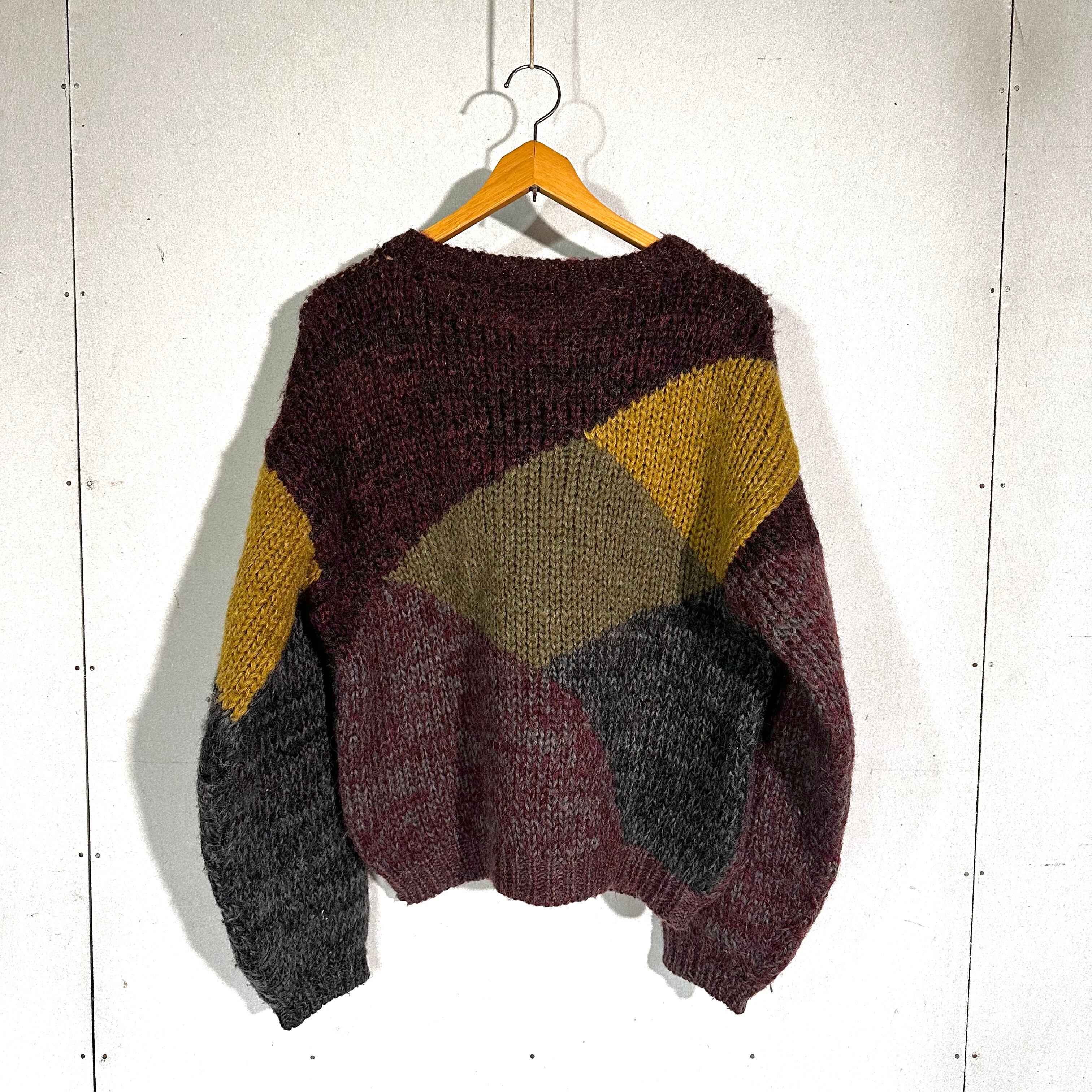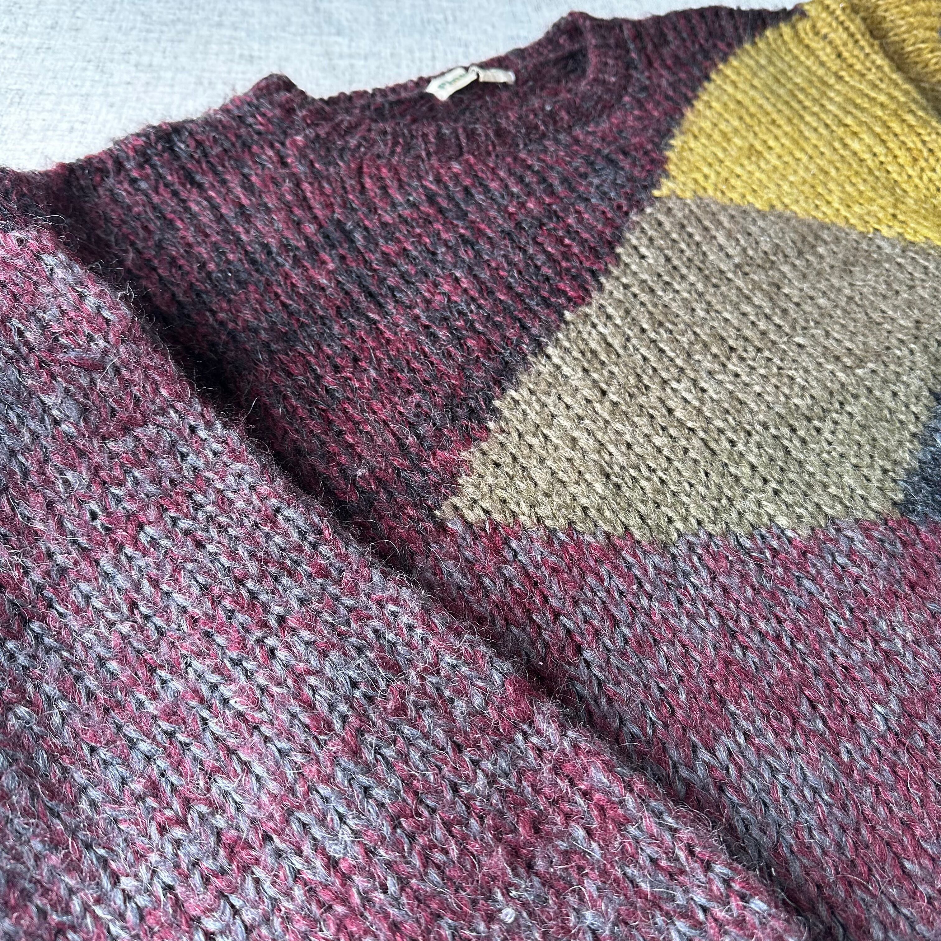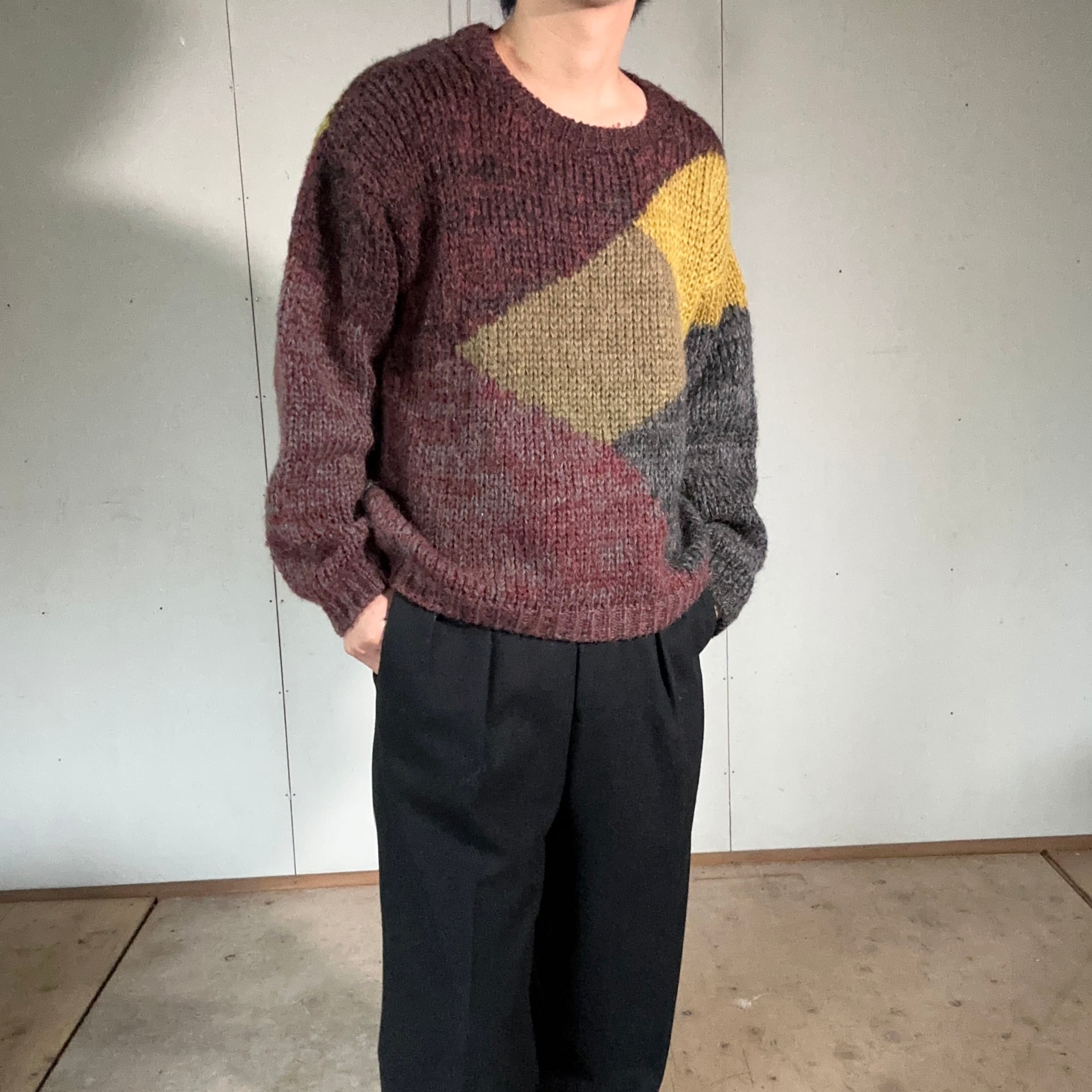 色と質感の“混ざり”が美しいブロッキングニット。80’s日本製ならではの雰囲気を纏った一着です。