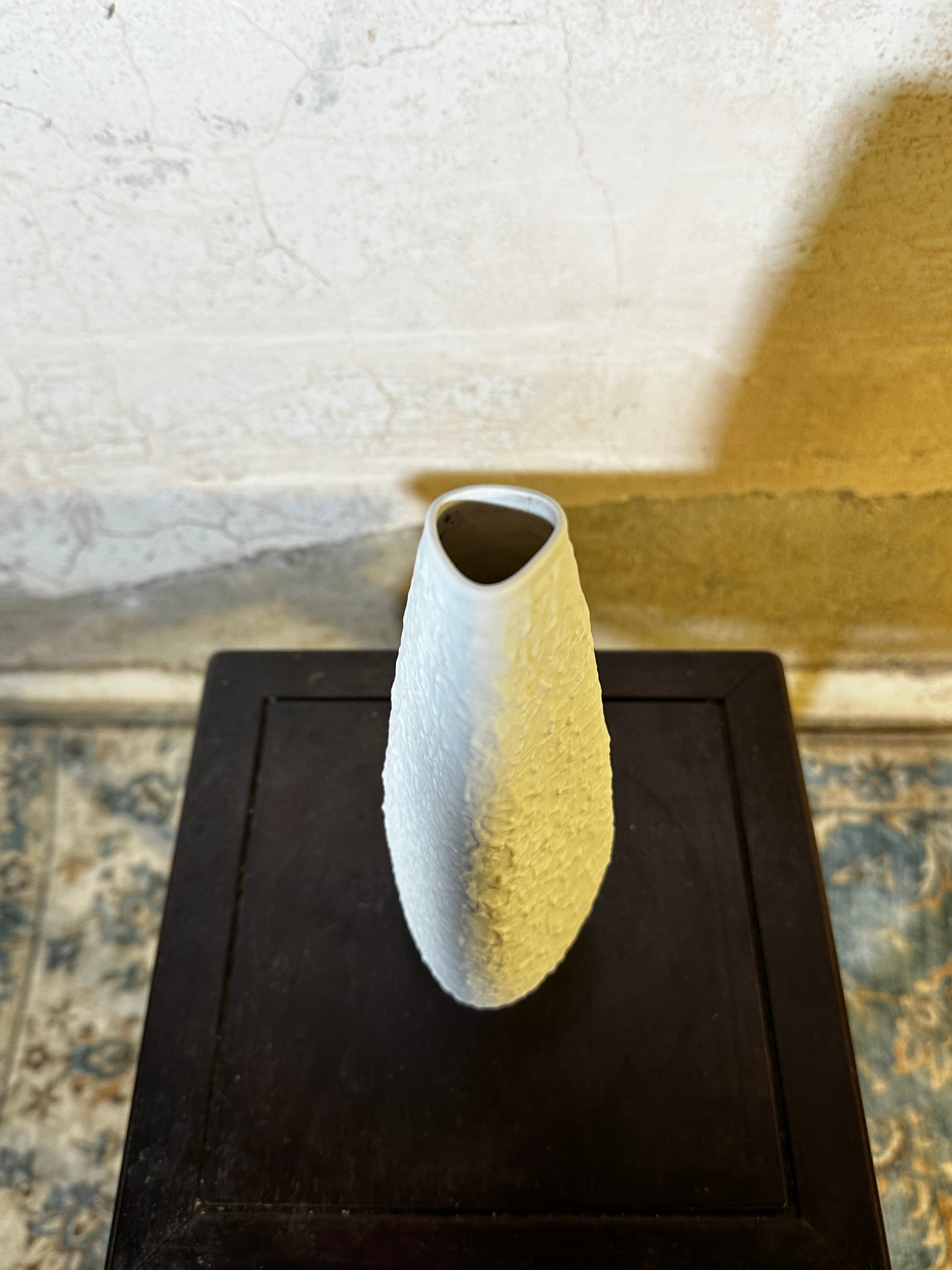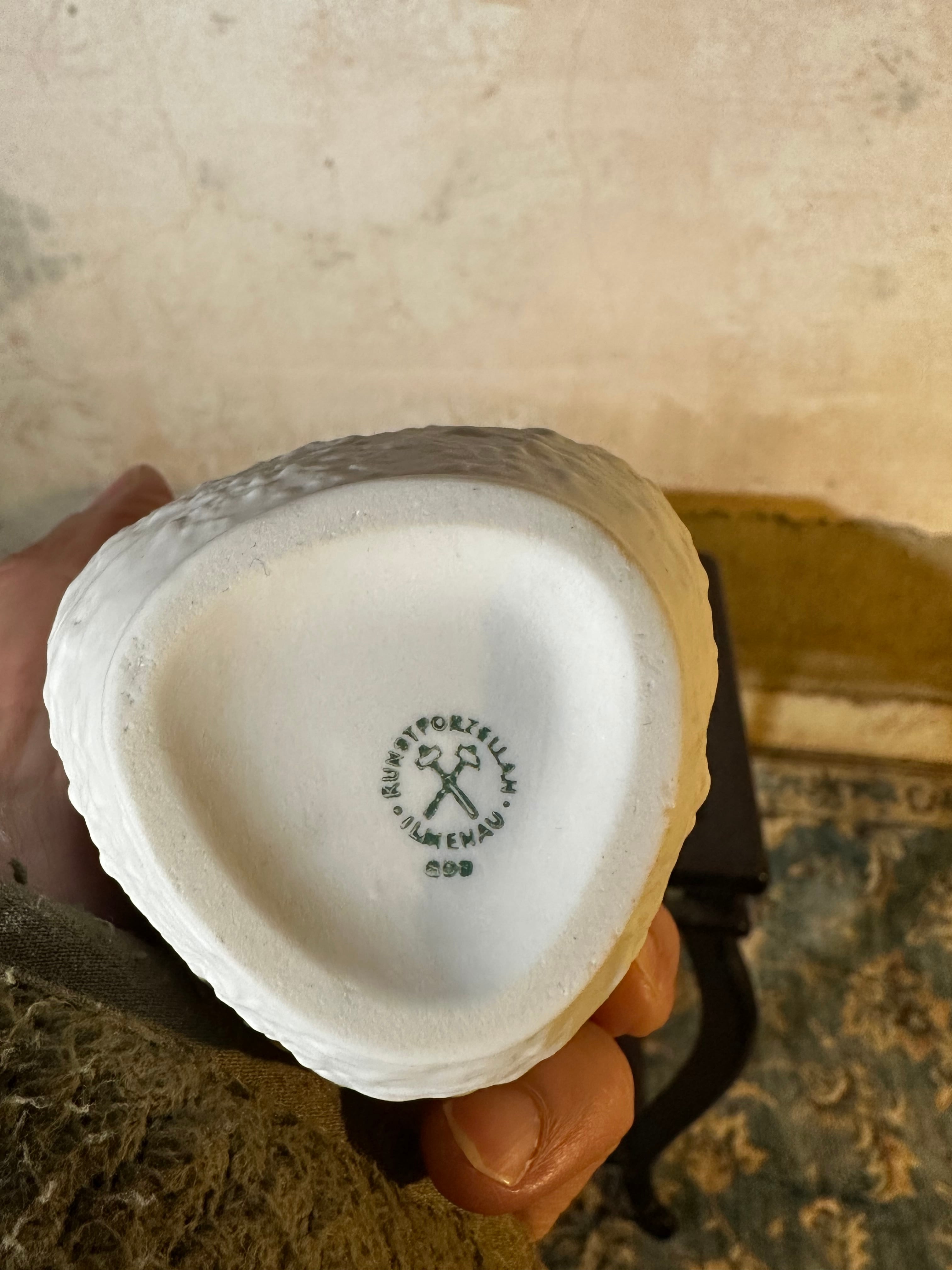 旧東ドイツの名窯「Kunstporzellan Ilmenau」による、樹皮を思わせる立体的なテクスチャーが印象的な白磁フラワーベース。