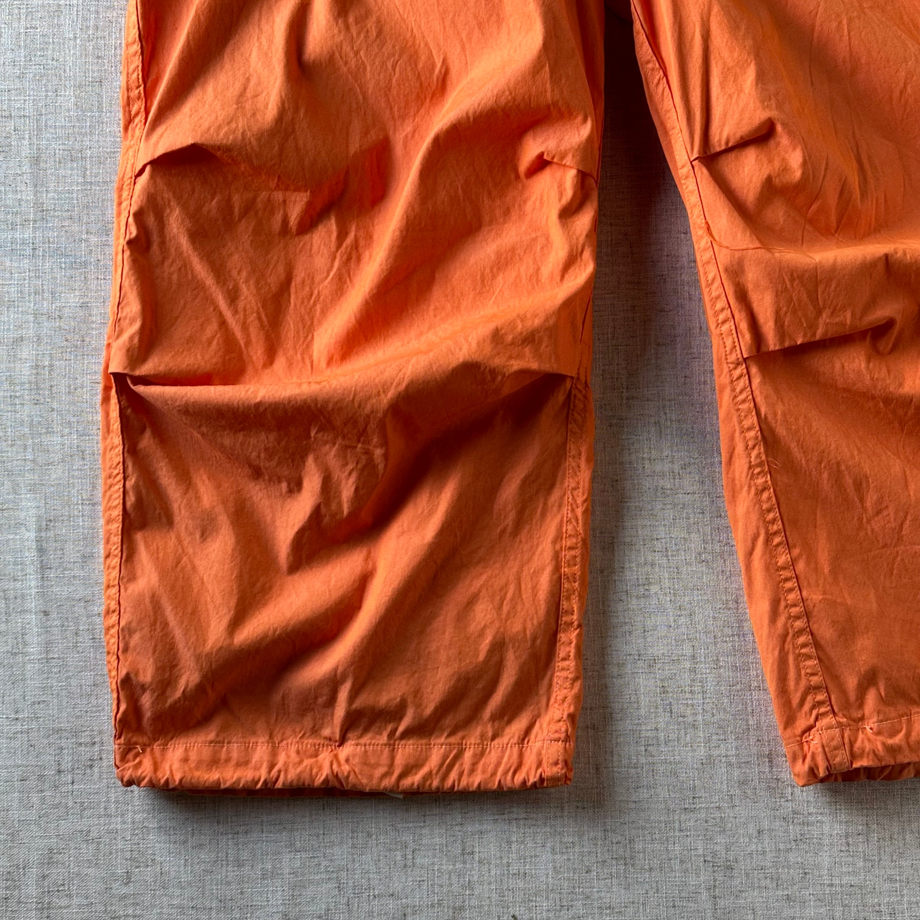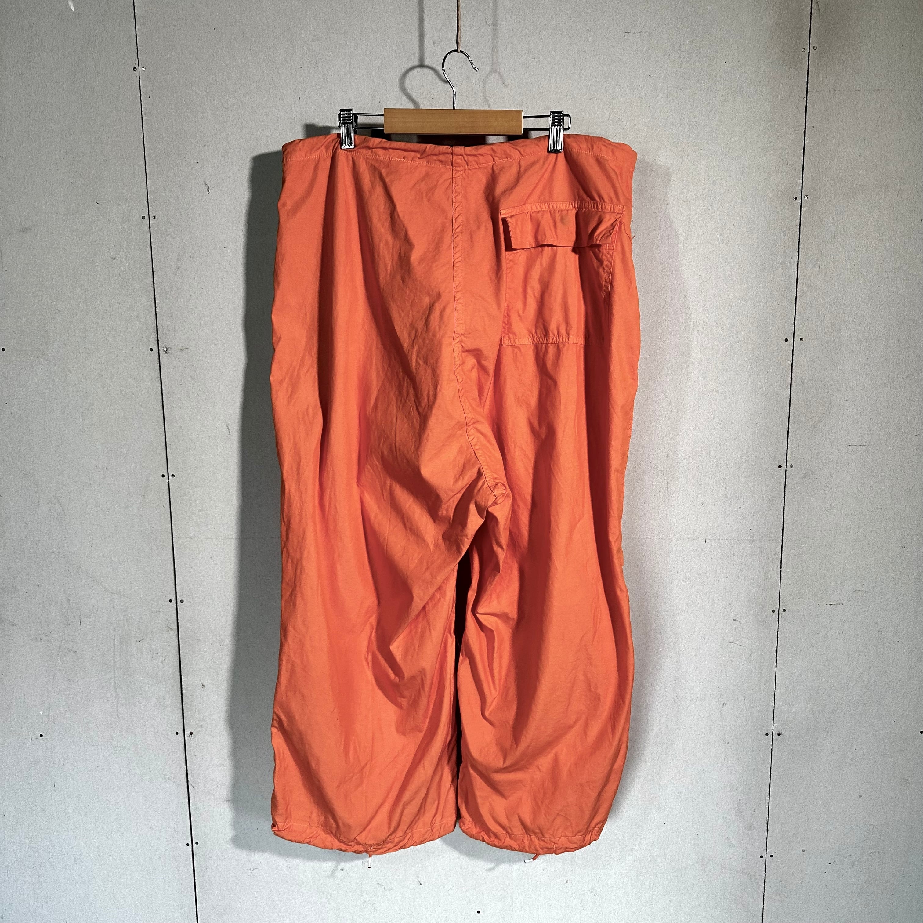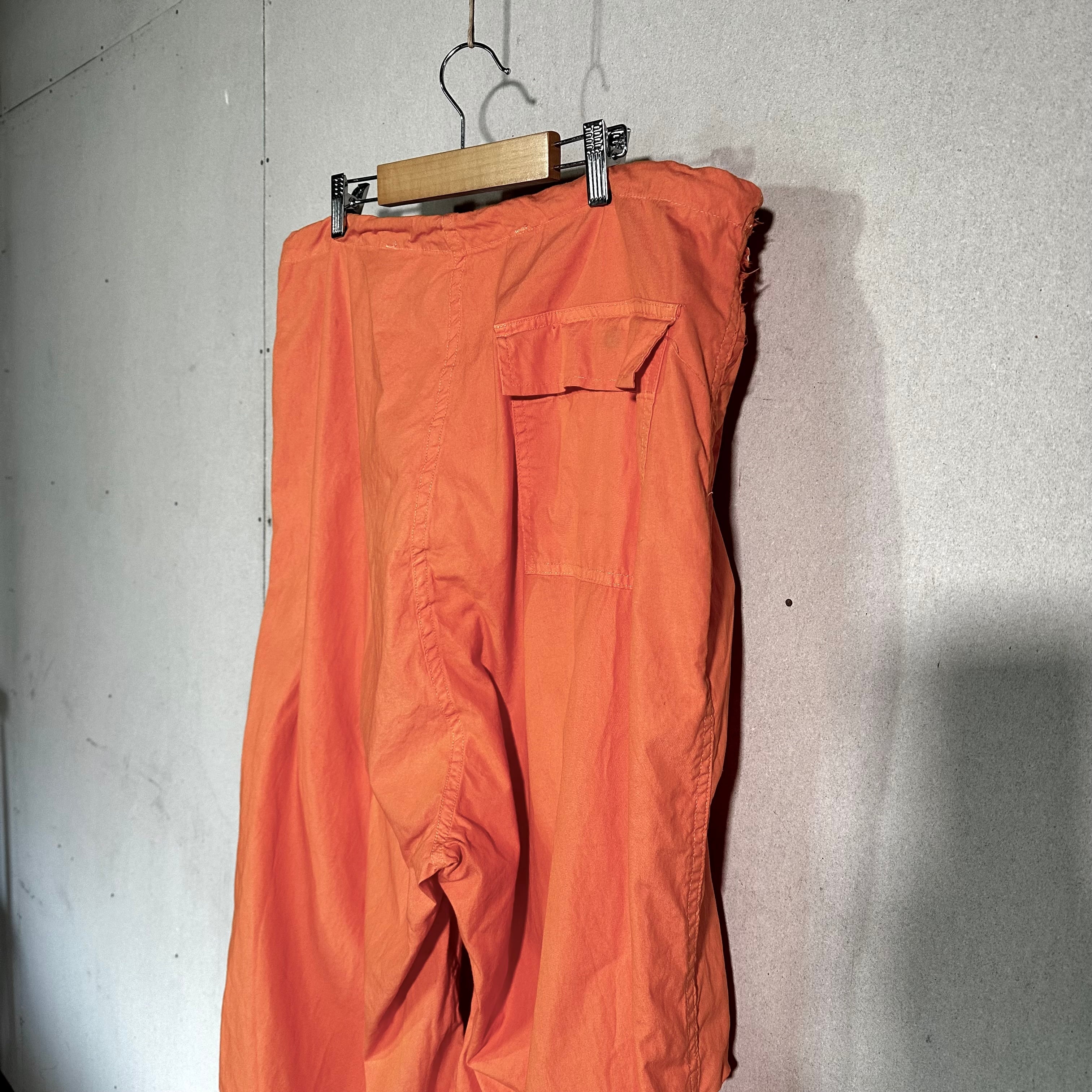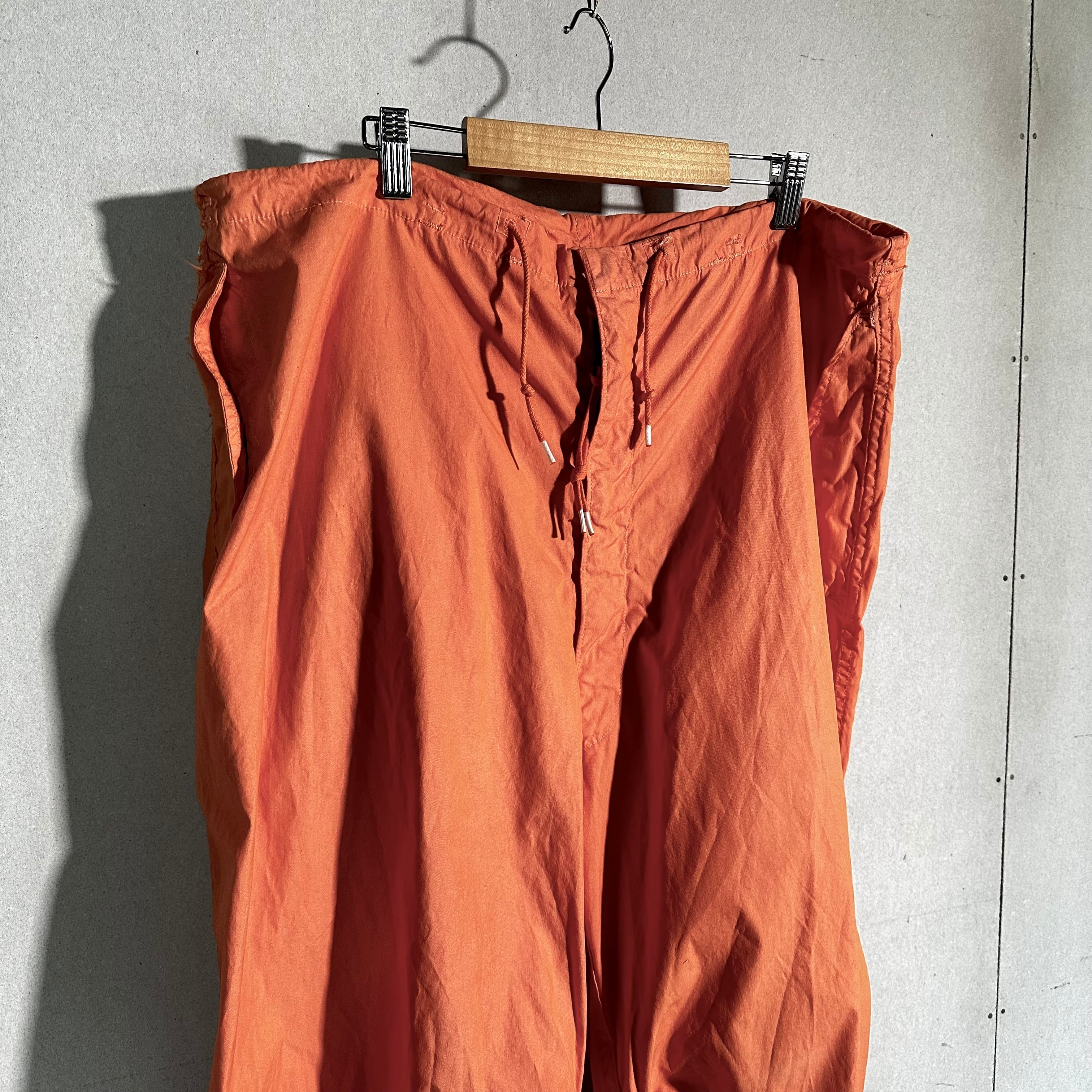 本来は雪上用カモフラージュとして作られたオーバーパンツを、後染めで鮮やかなオレンジカラーに仕上げた一本です。