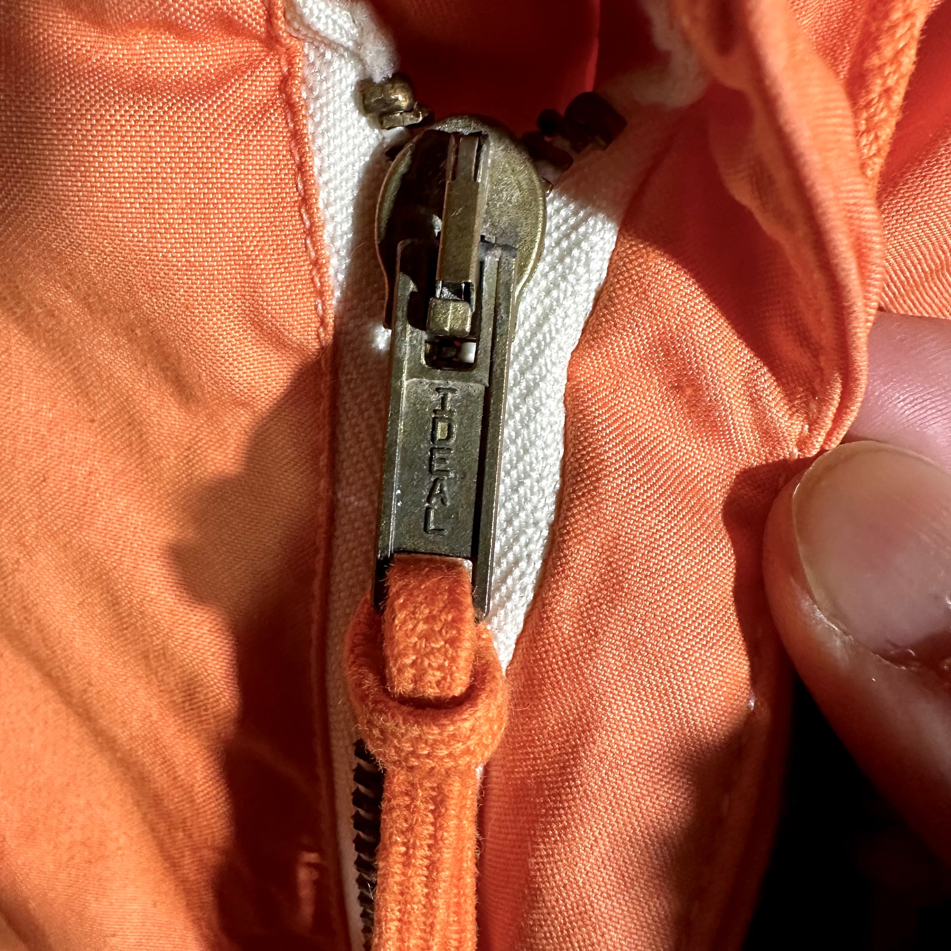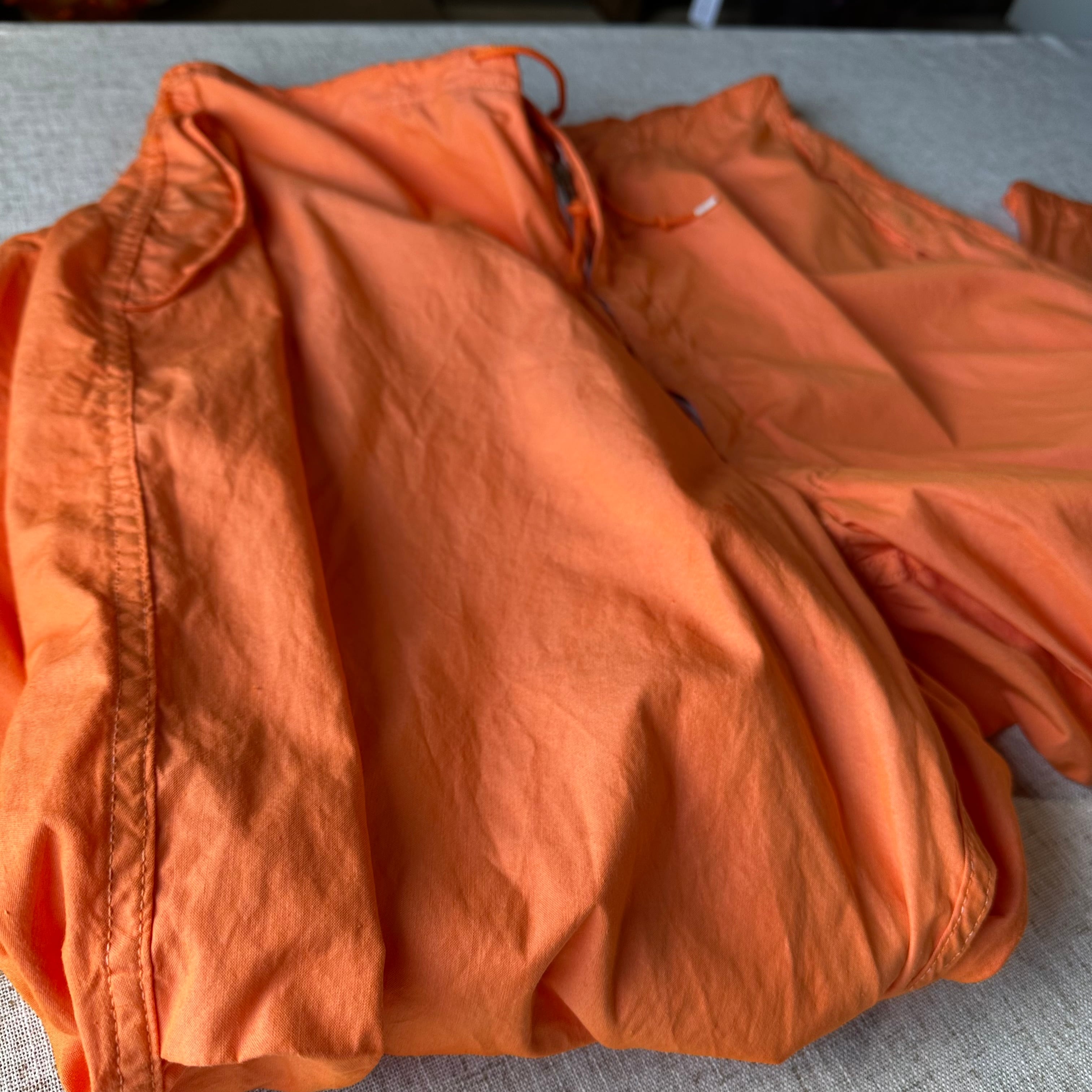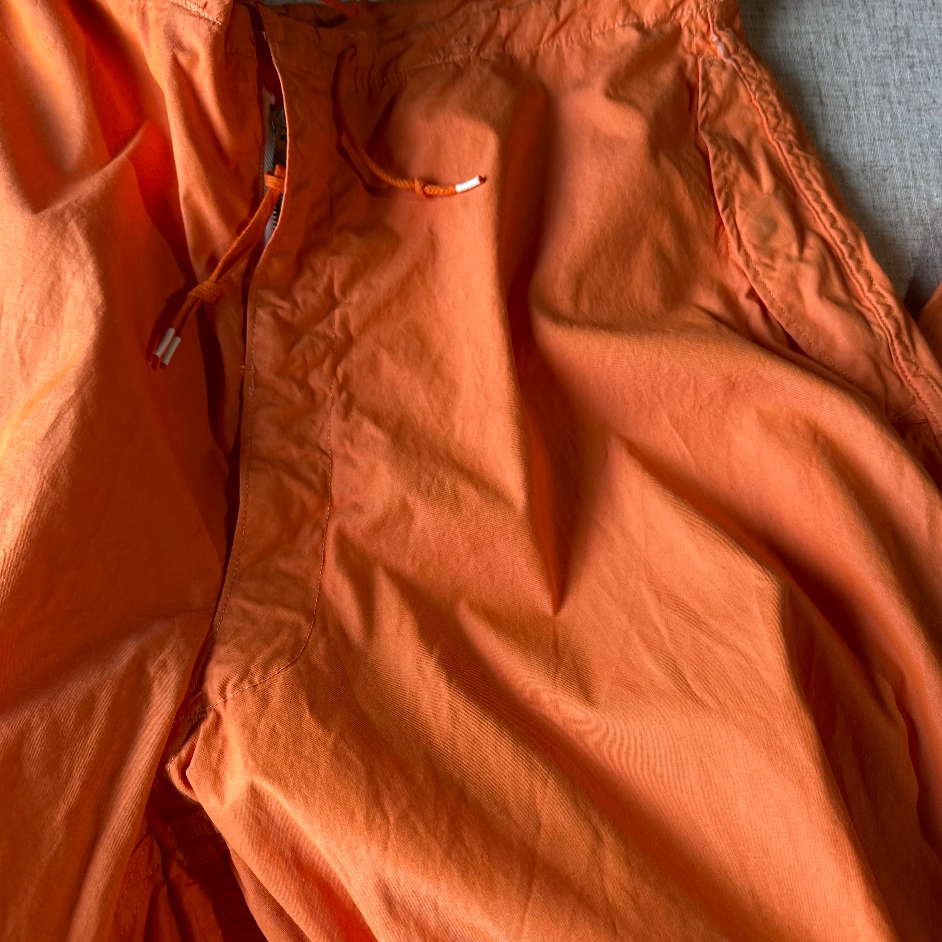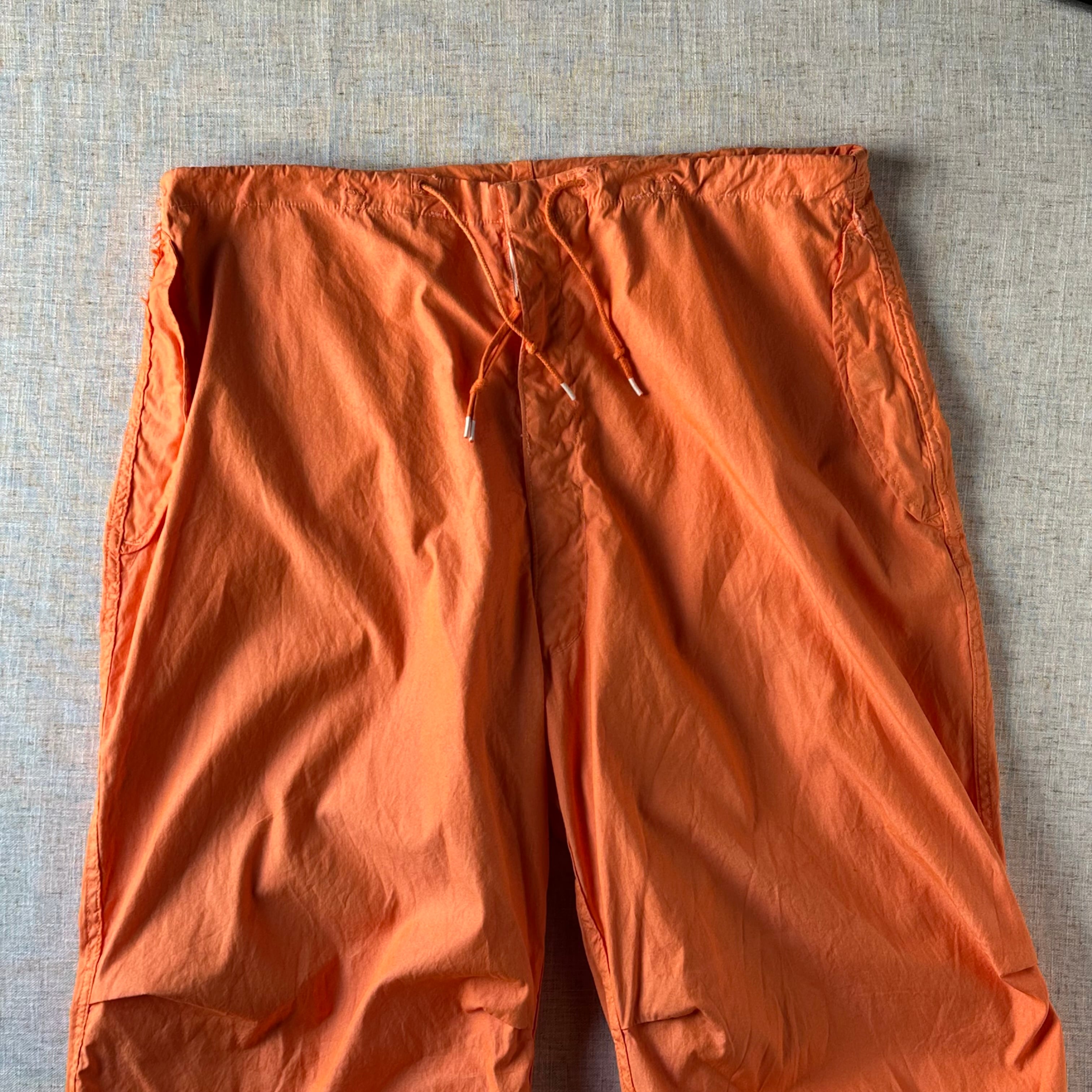 本来は雪上用カモフラージュとして作られたオーバーパンツを、後染めで鮮やかなオレンジカラーに仕上げた一本です。