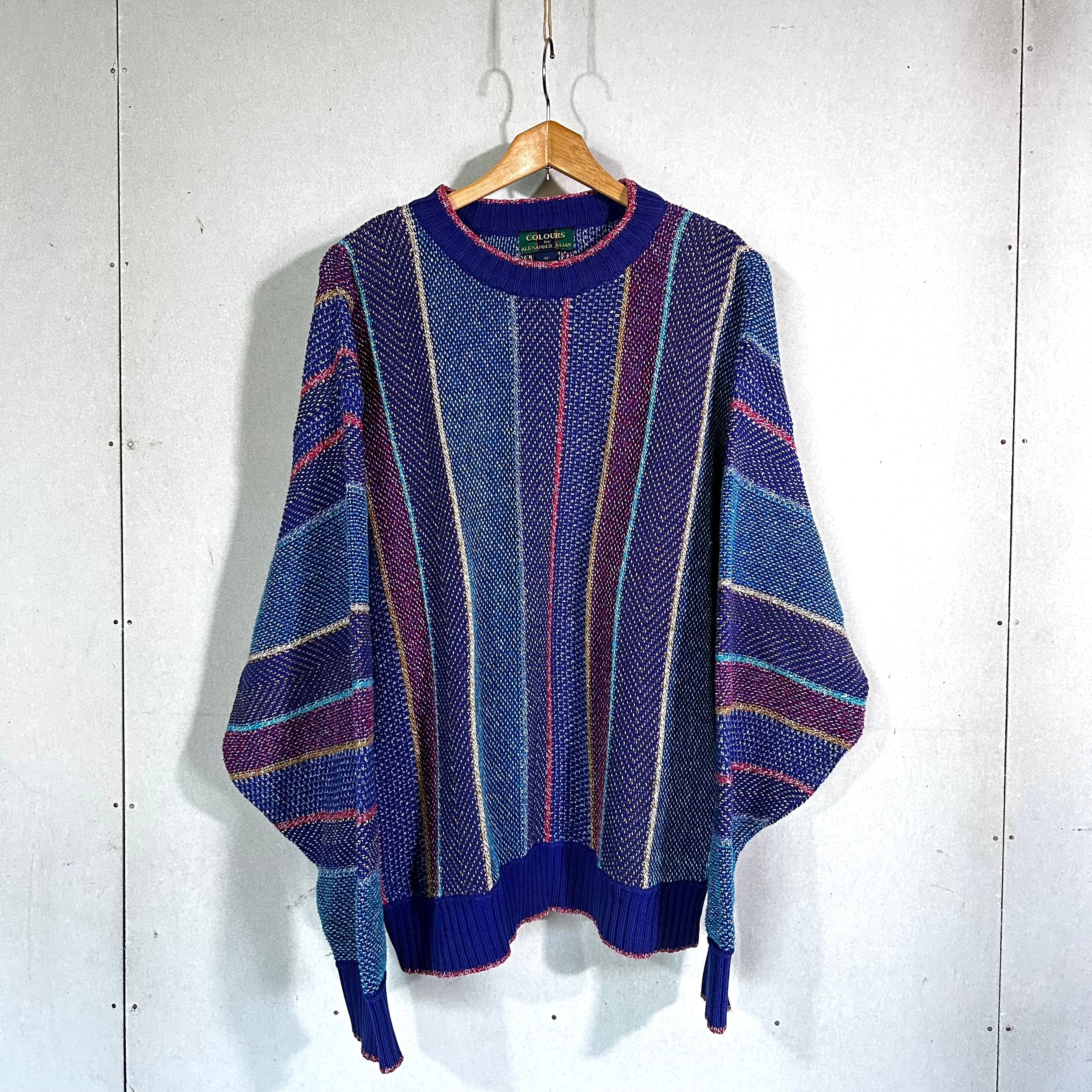ネイビーを基調に、ターコイズやレッドのストライプを組み合わせた90年代らしい配色が魅力です。袖にボリュームの出るゆったりとしたシルエットで、ユニセックスに着られます。