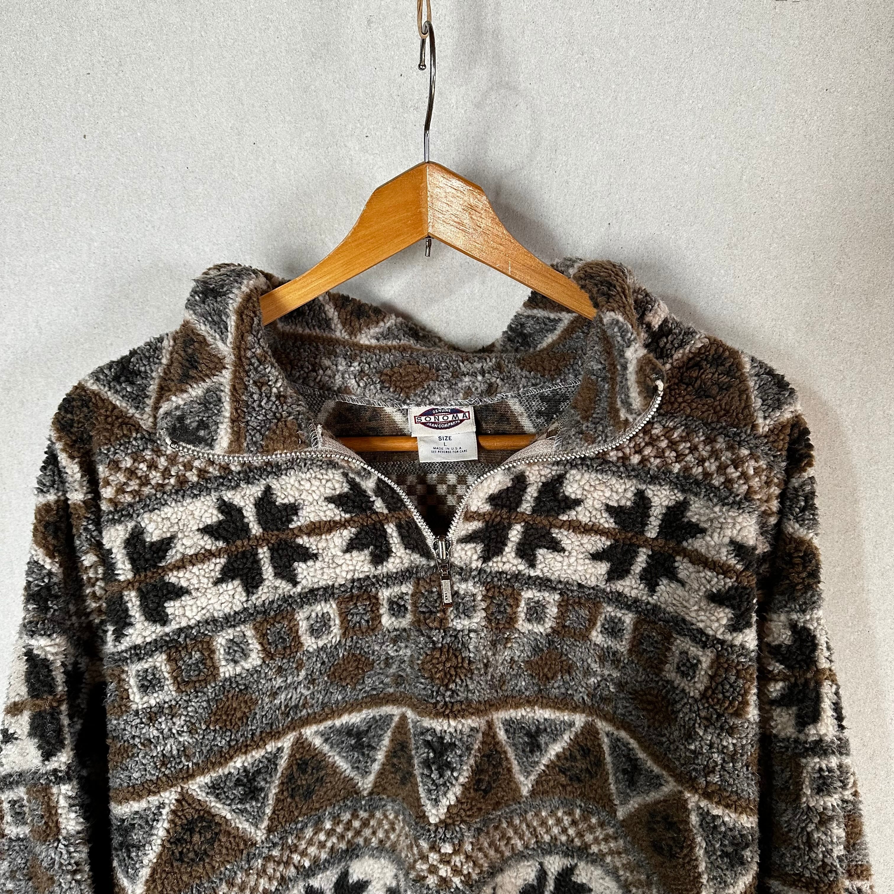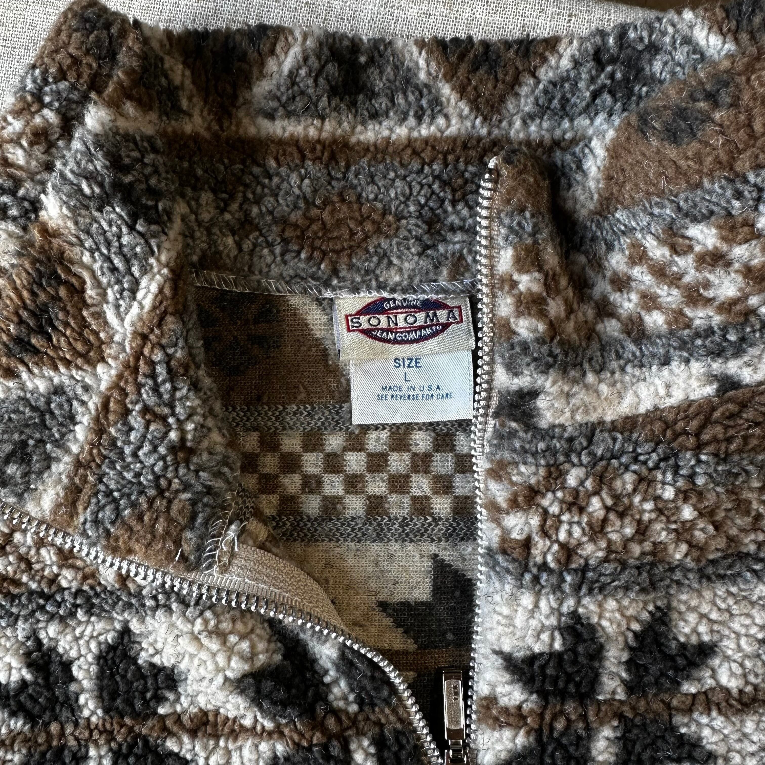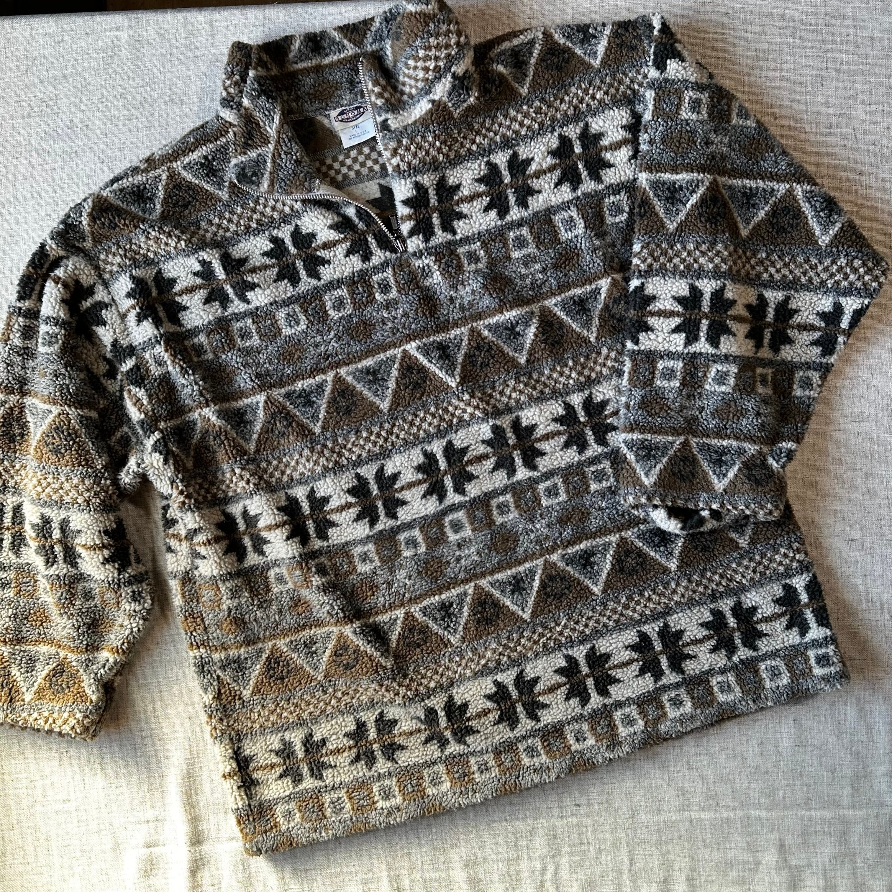 Geometric Pattern Boa Fleece Half-Zip Pullover, USA 1990s
