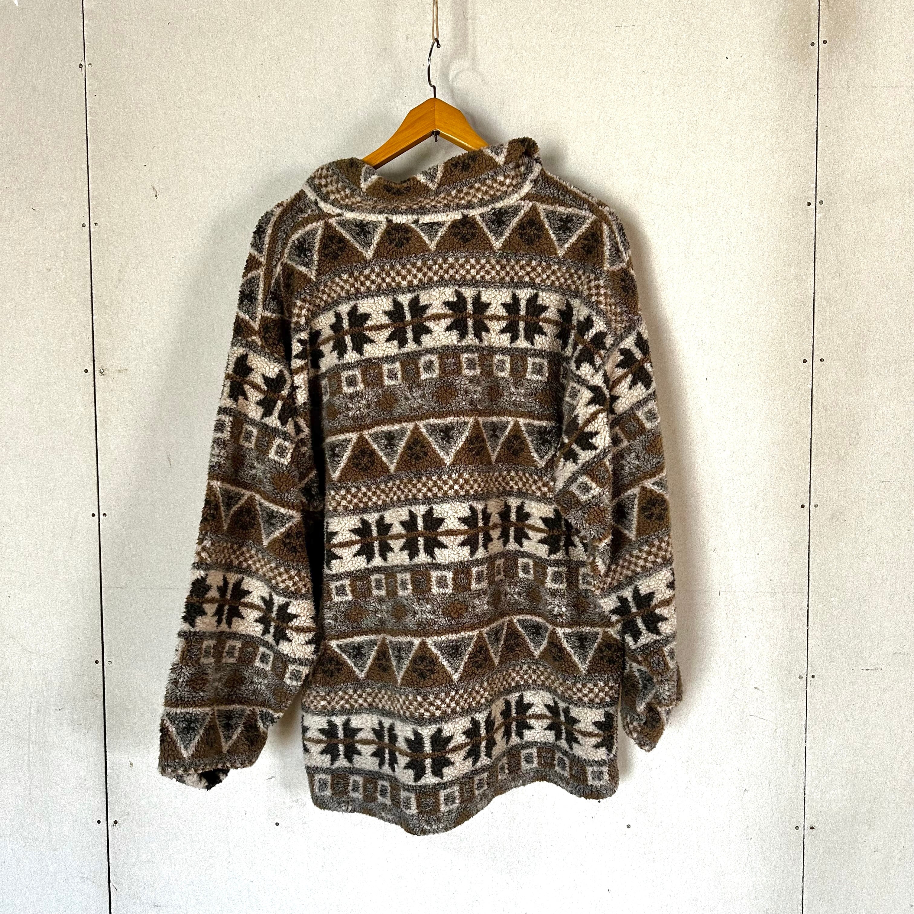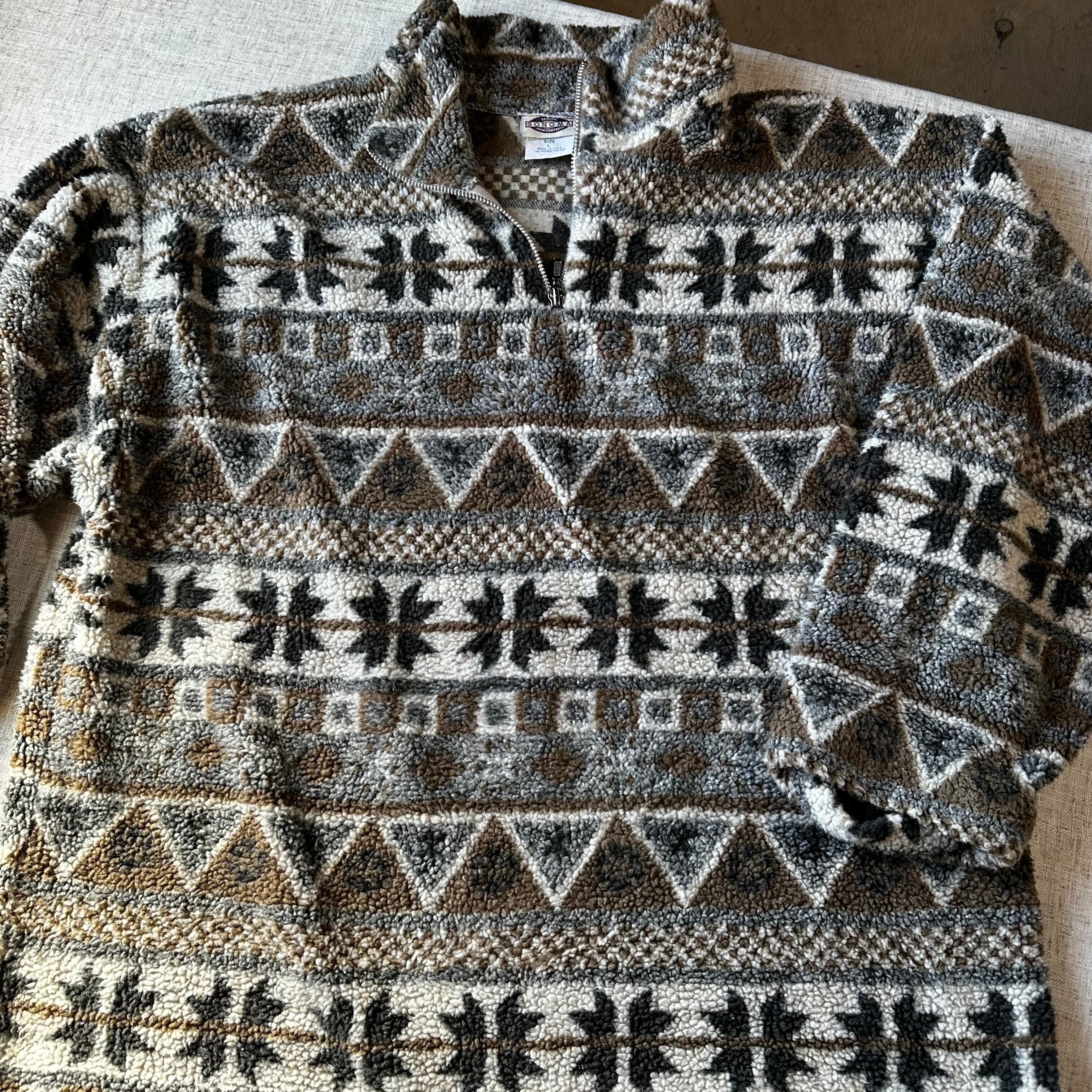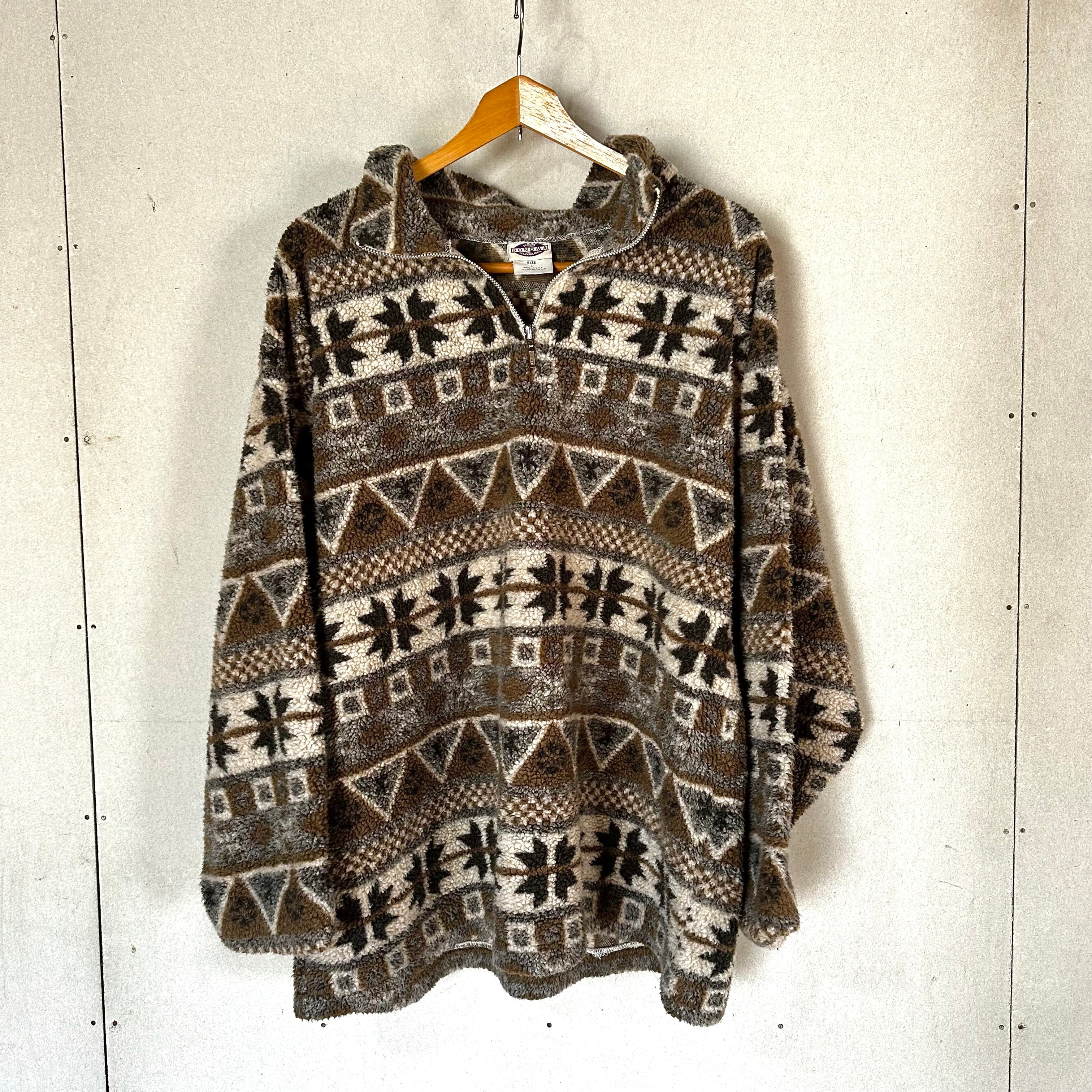 Geometric Pattern Boa Fleece Half-Zip Pullover, USA 1990s