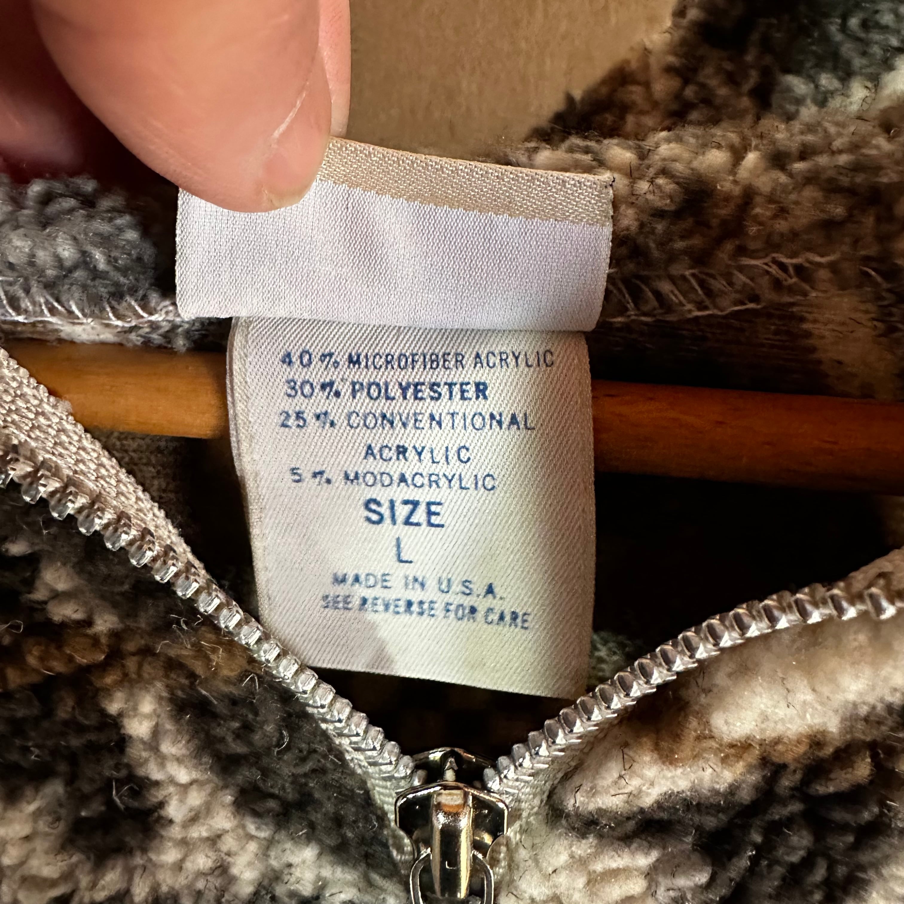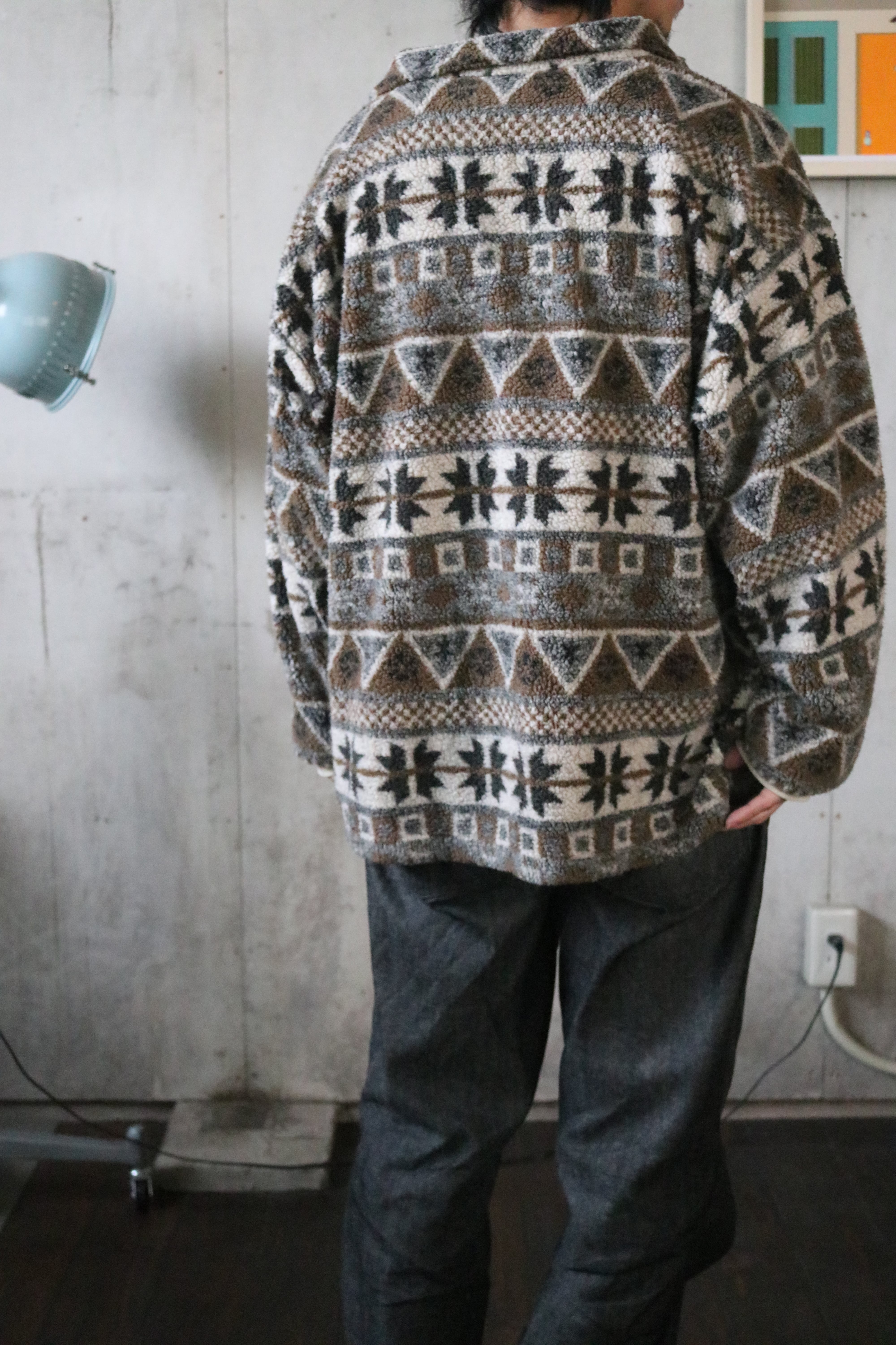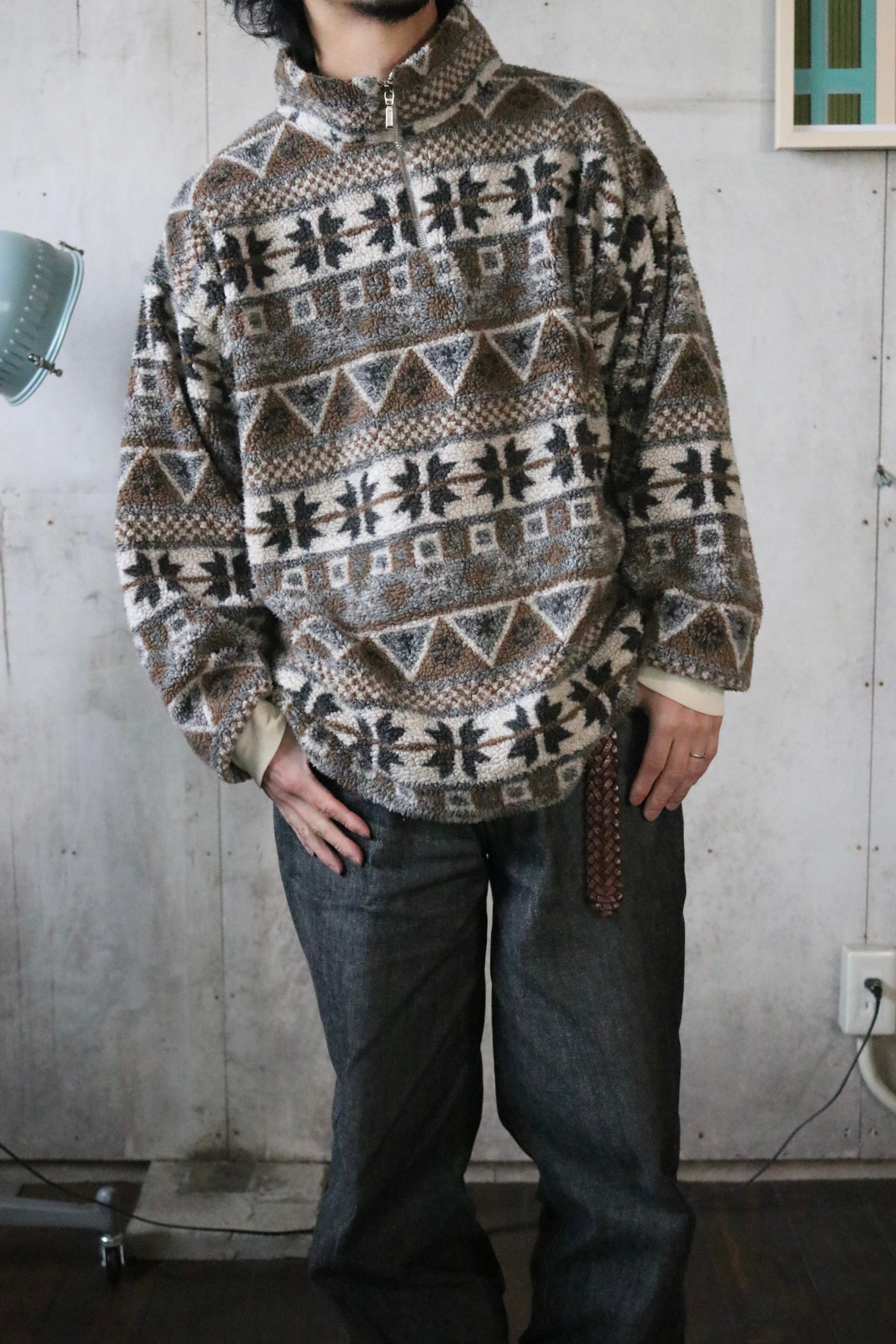 アメリカ製、総柄ボアフリースのハーフジッププルオーバー。