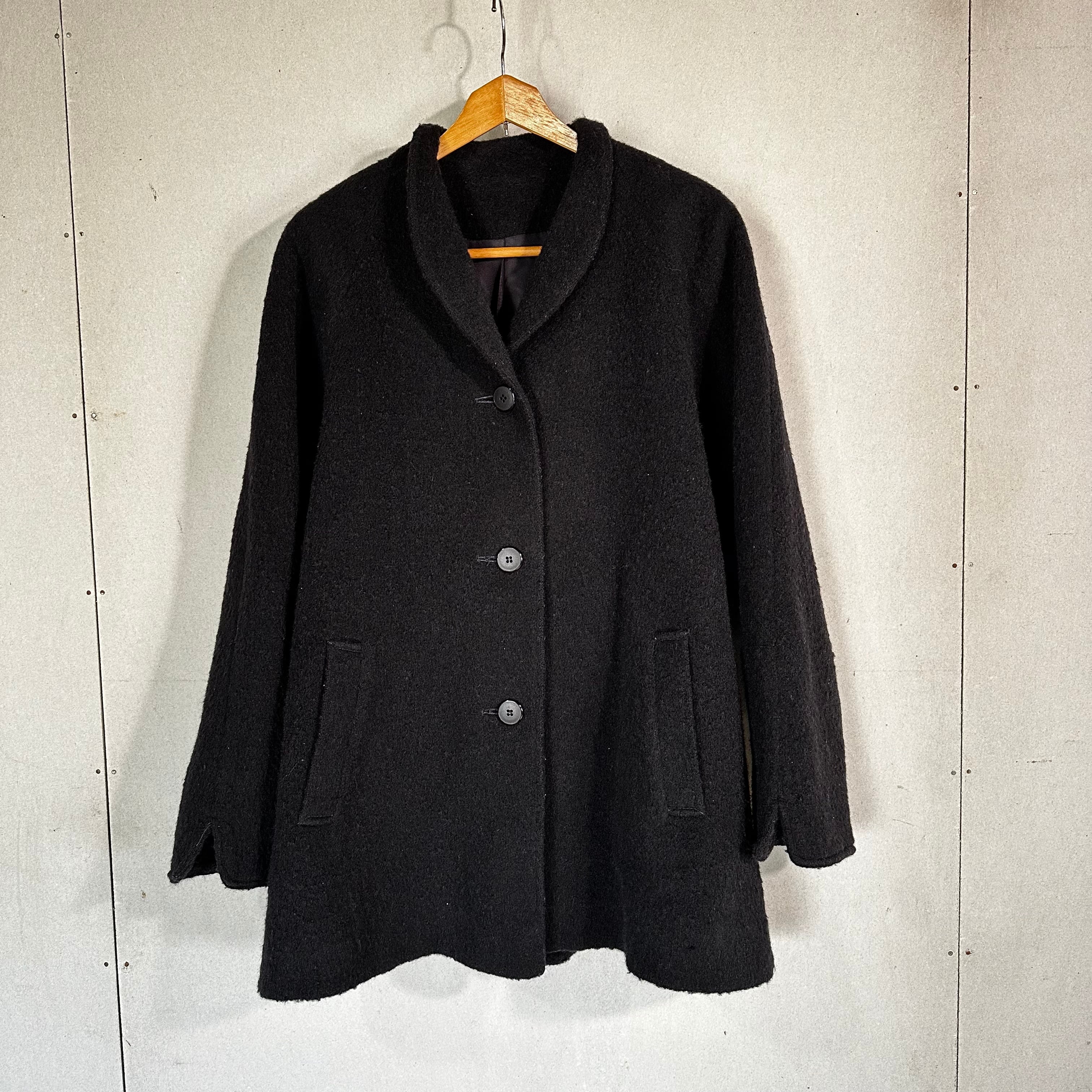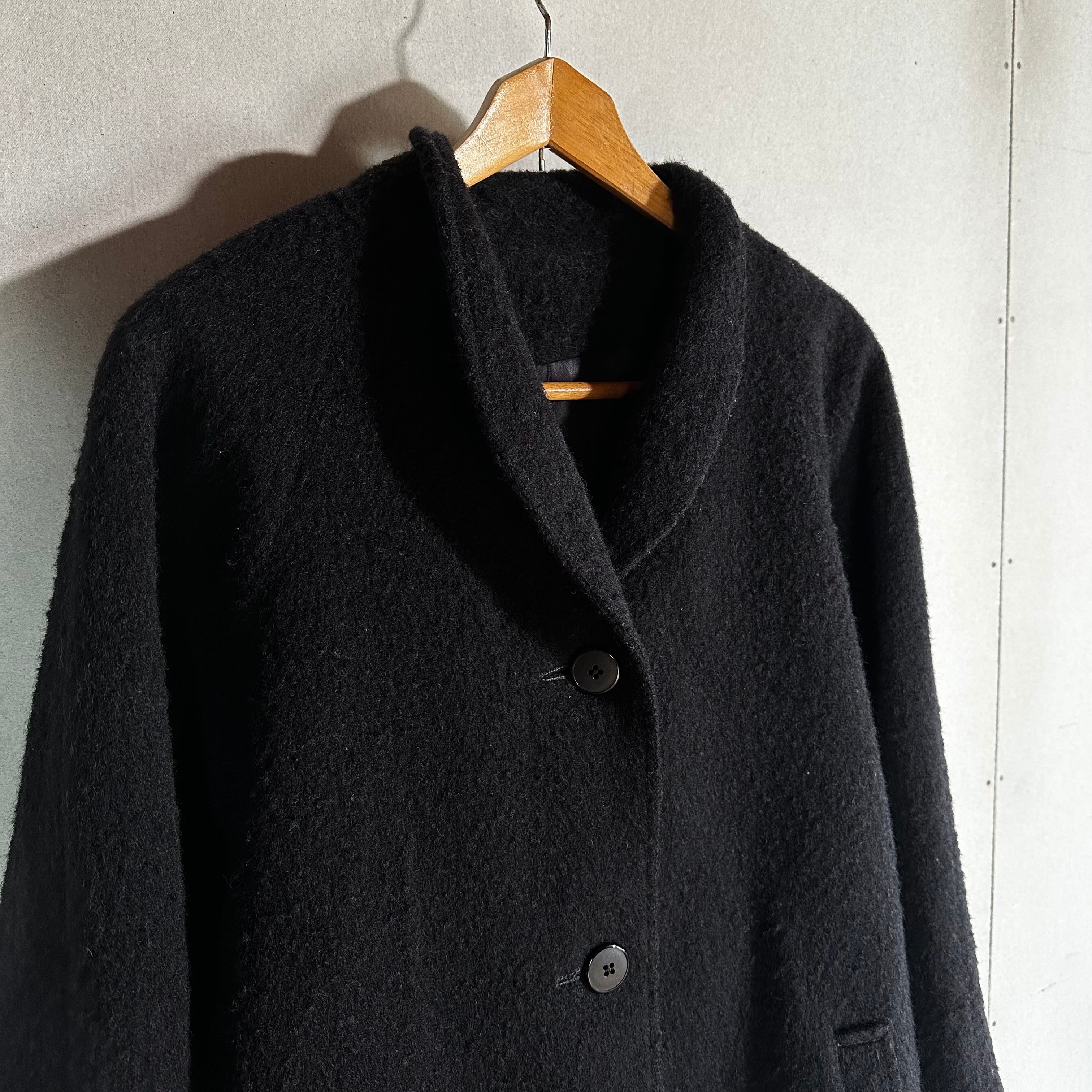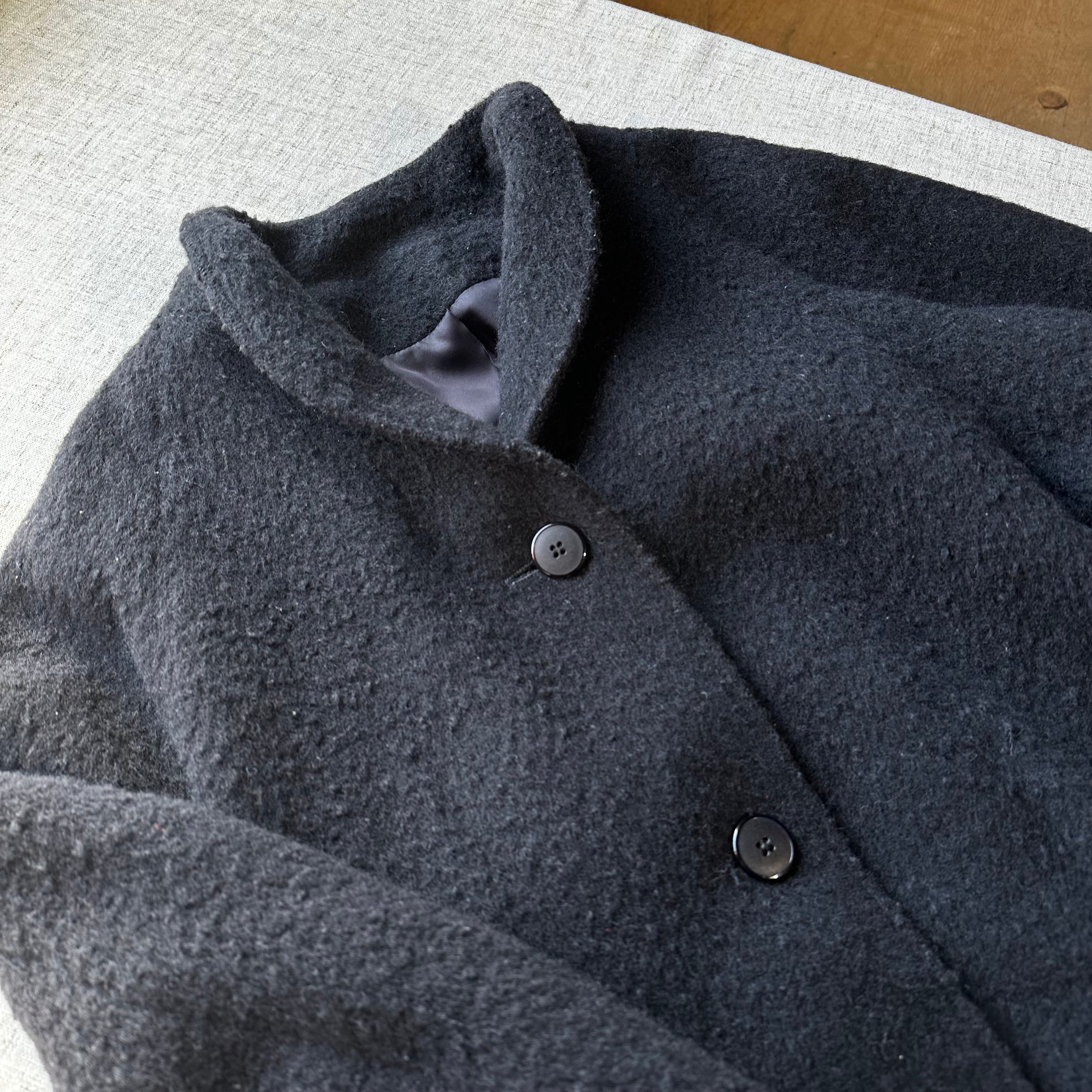 起毛感のあるブラックウールを使用した、ミニマルな佇まいのヴィンテージコート。