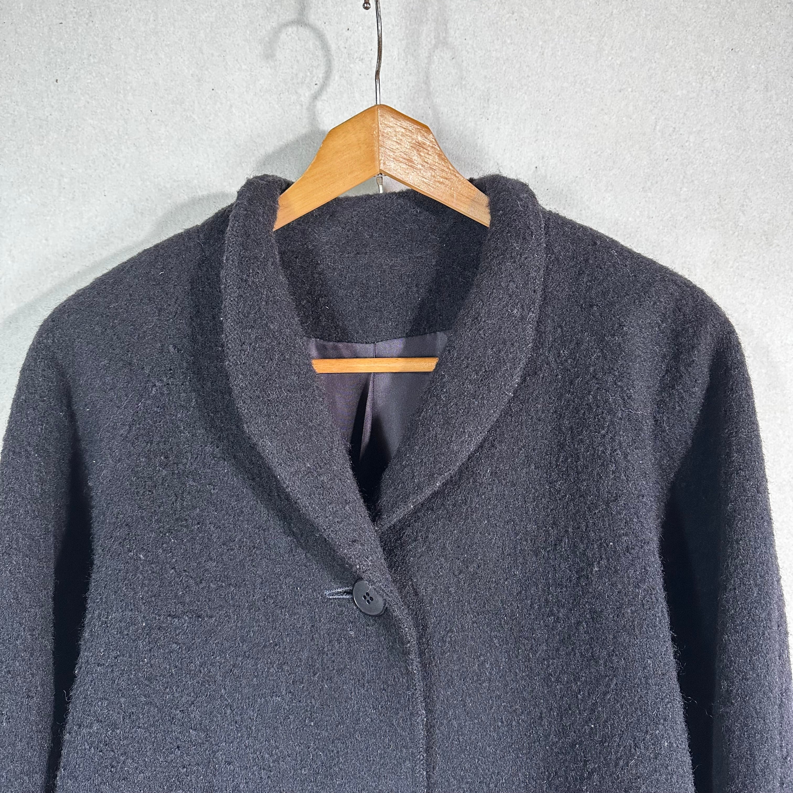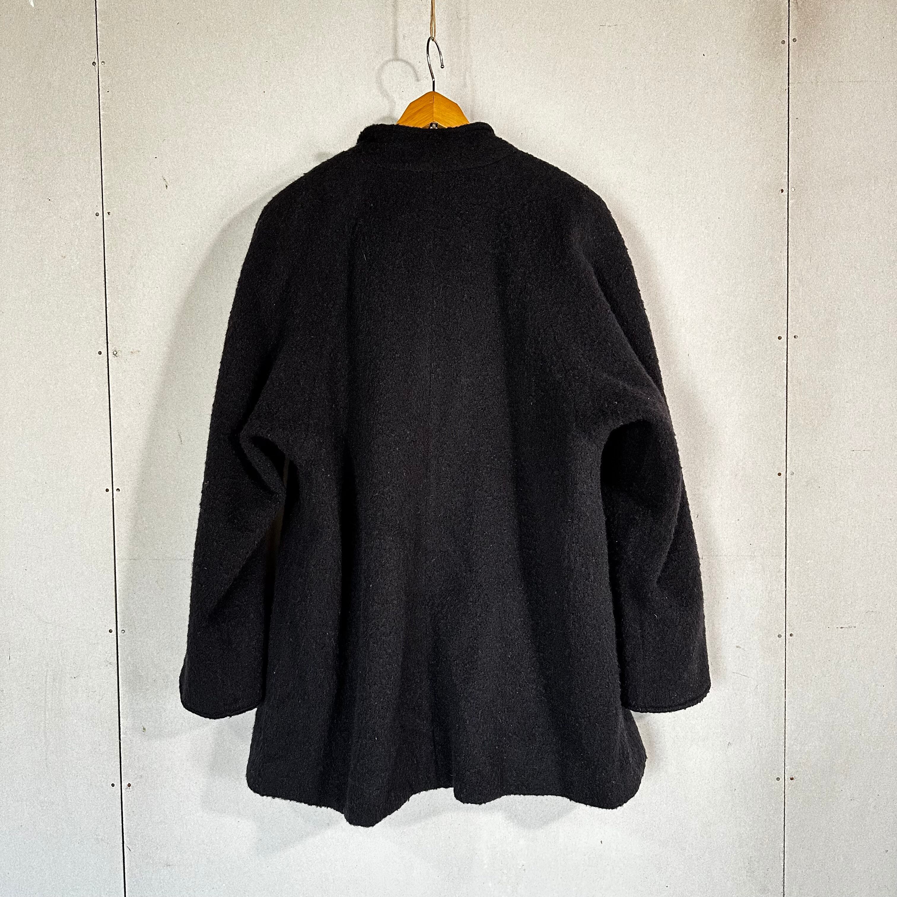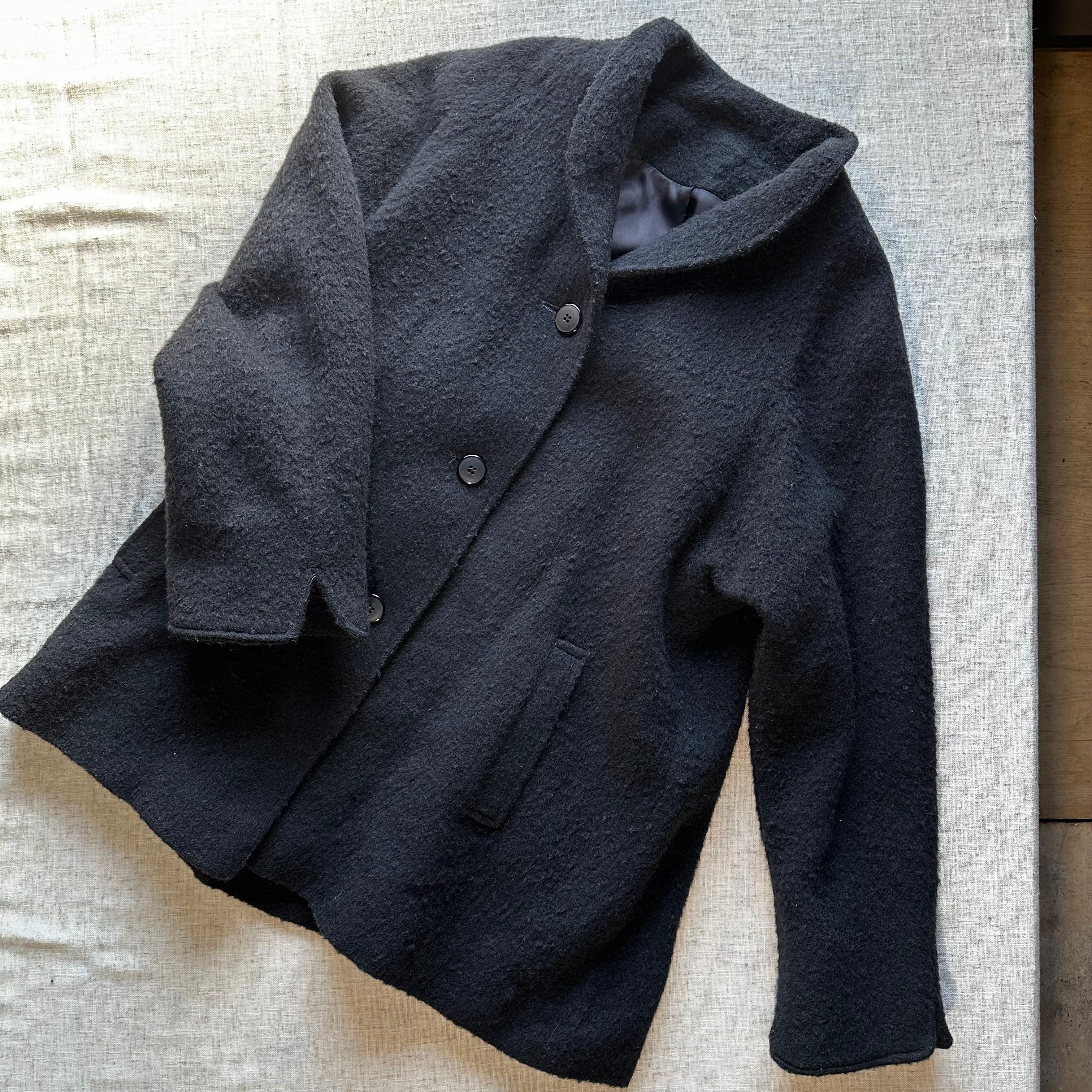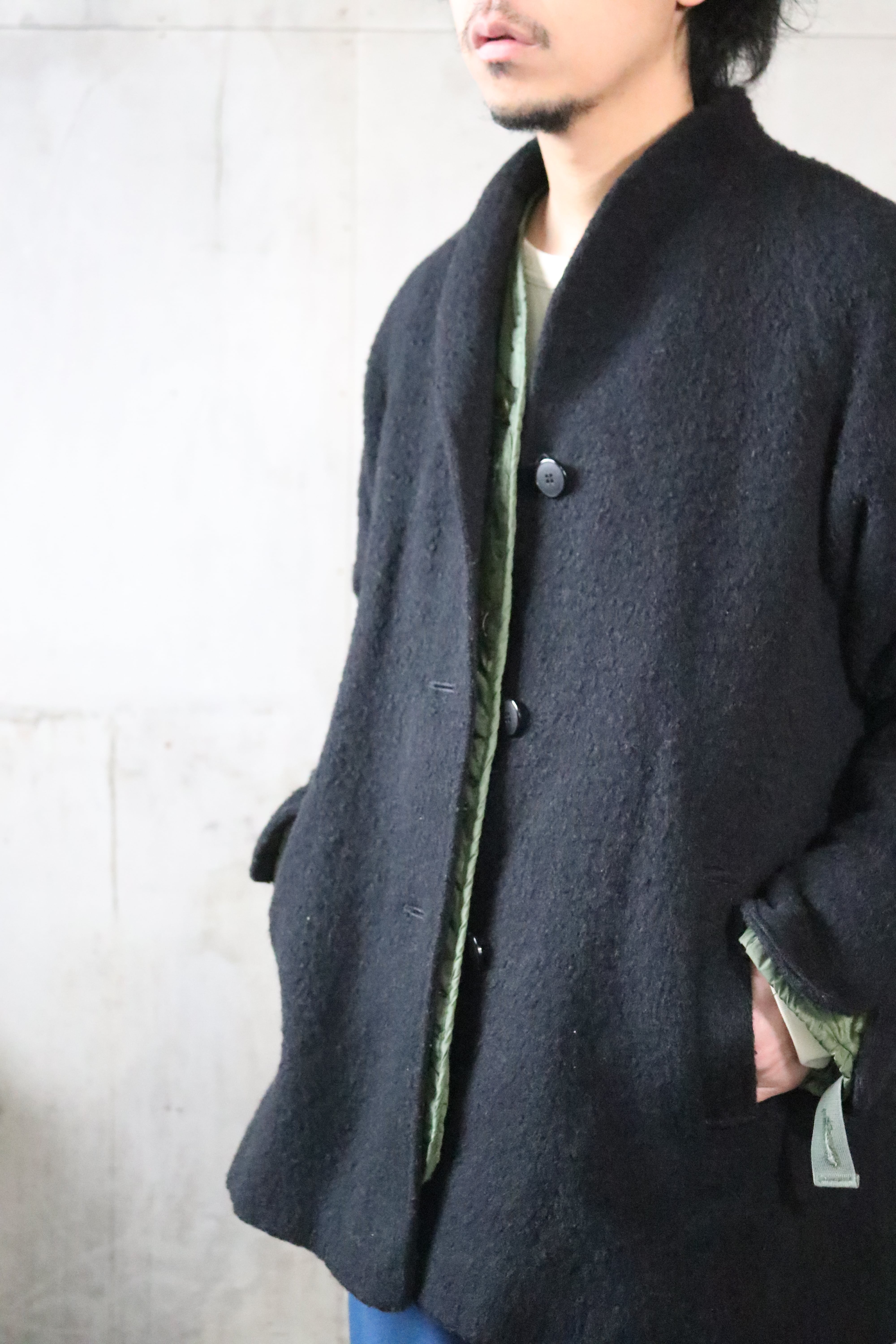 起毛感のあるブラックウールを使用した、ミニマルな佇まいのヴィンテージコート。
