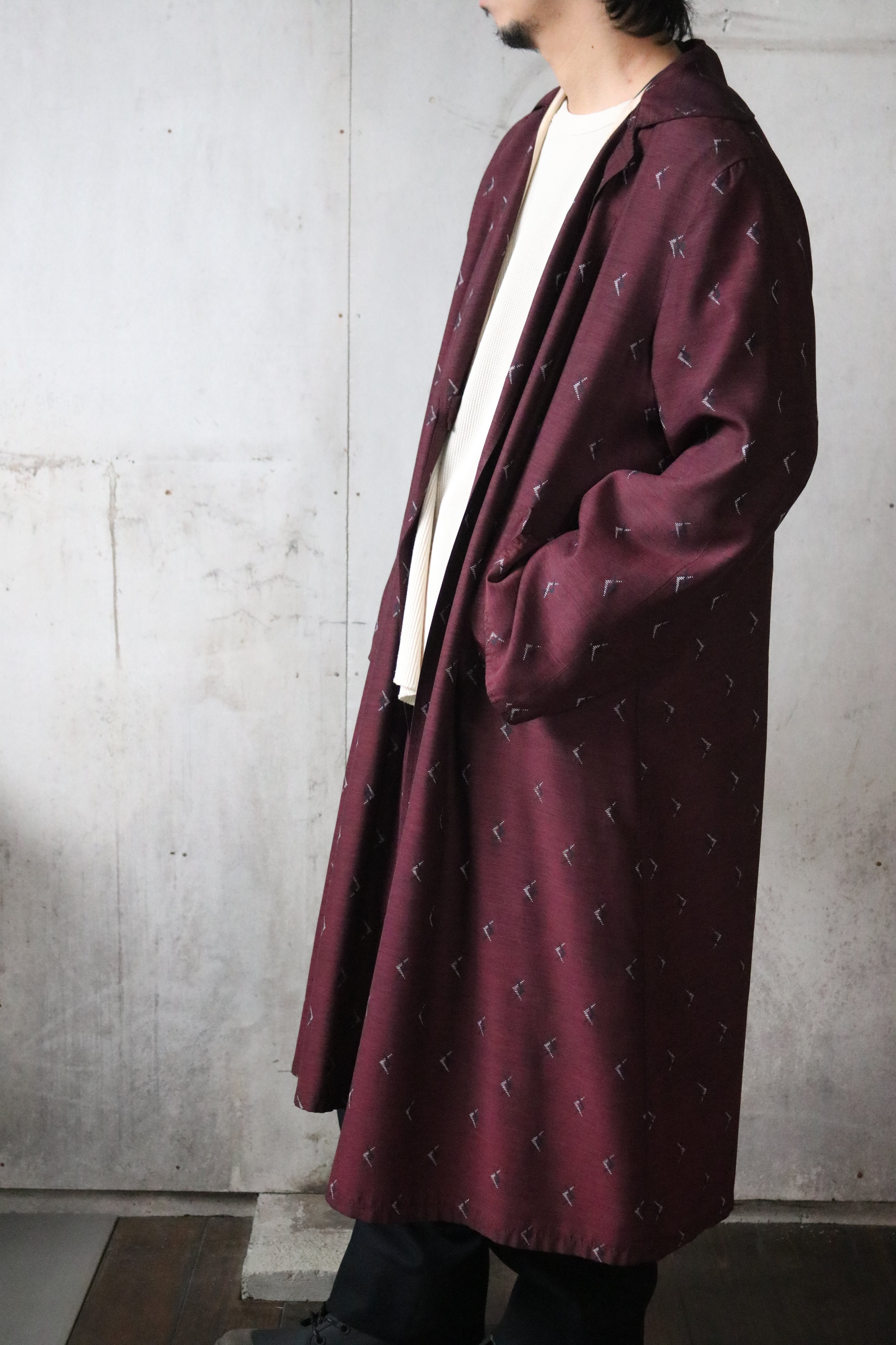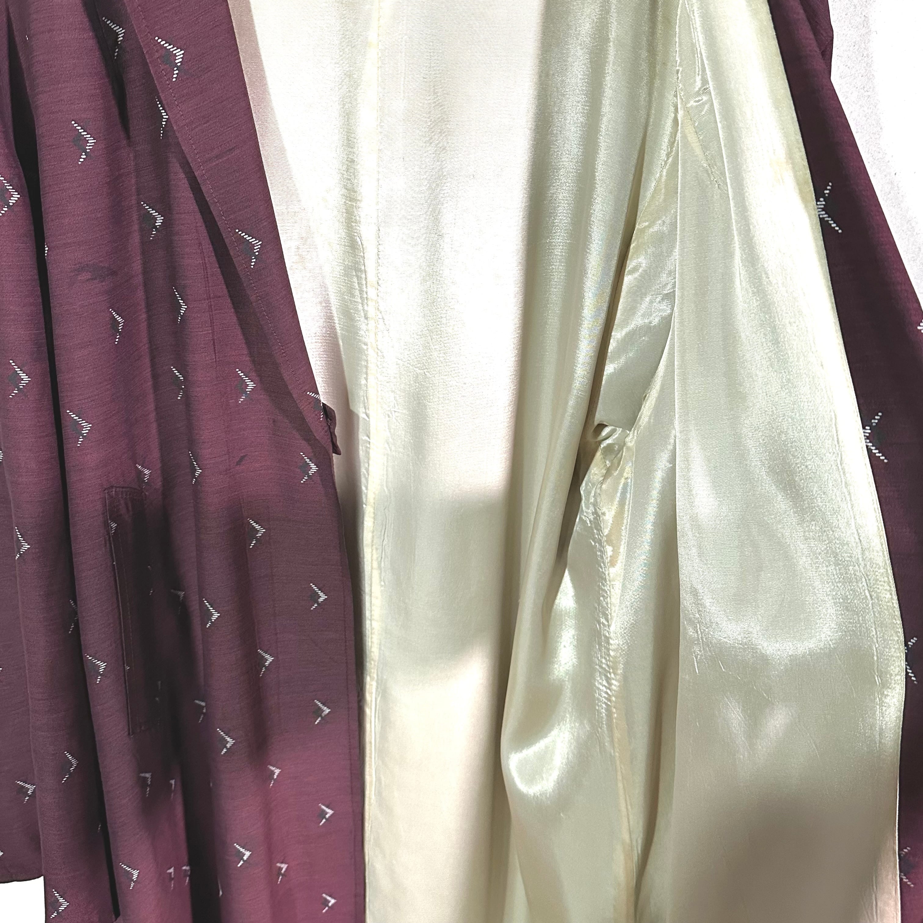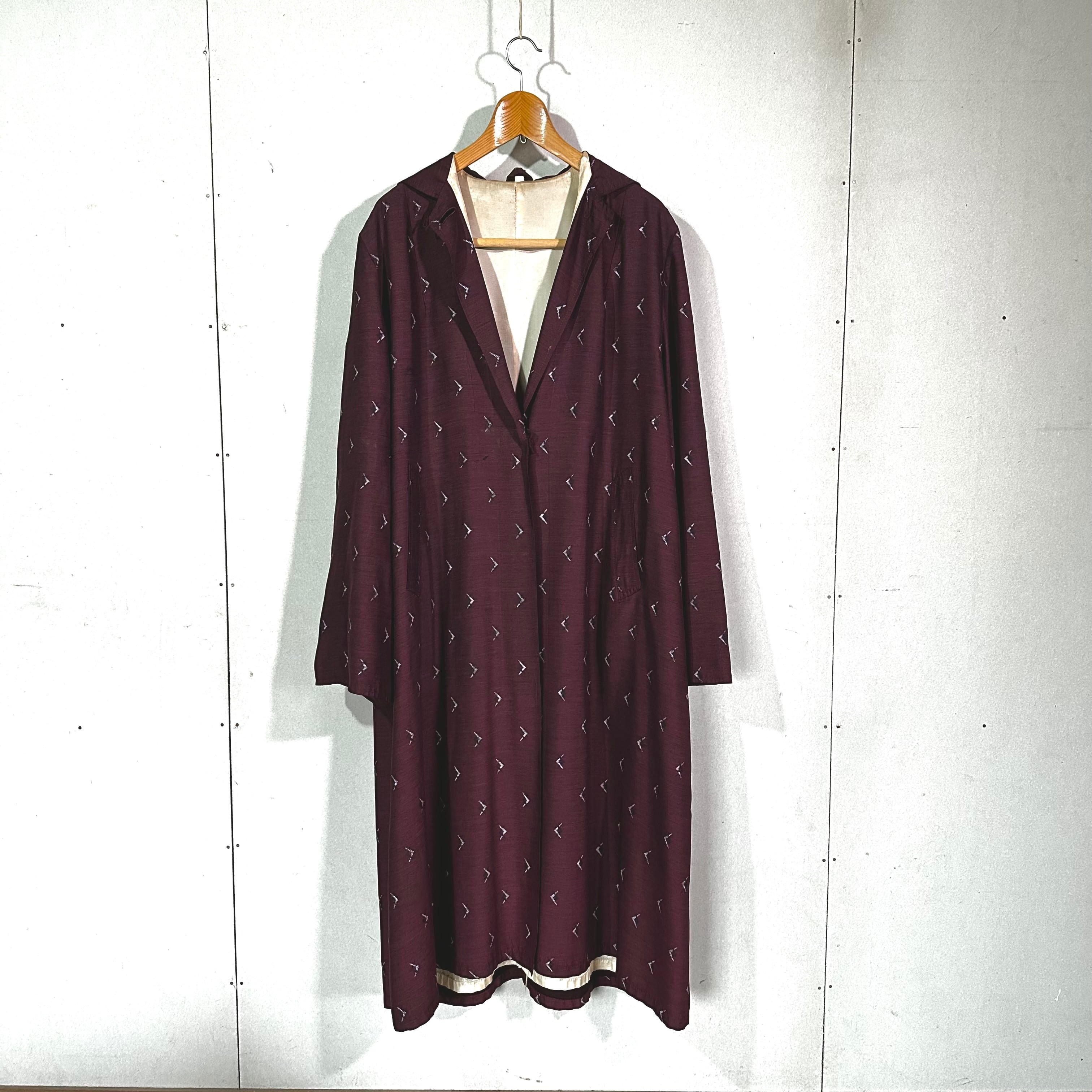 昭和期の和装生地を用いて仕立てられた、ロング丈のガウン。