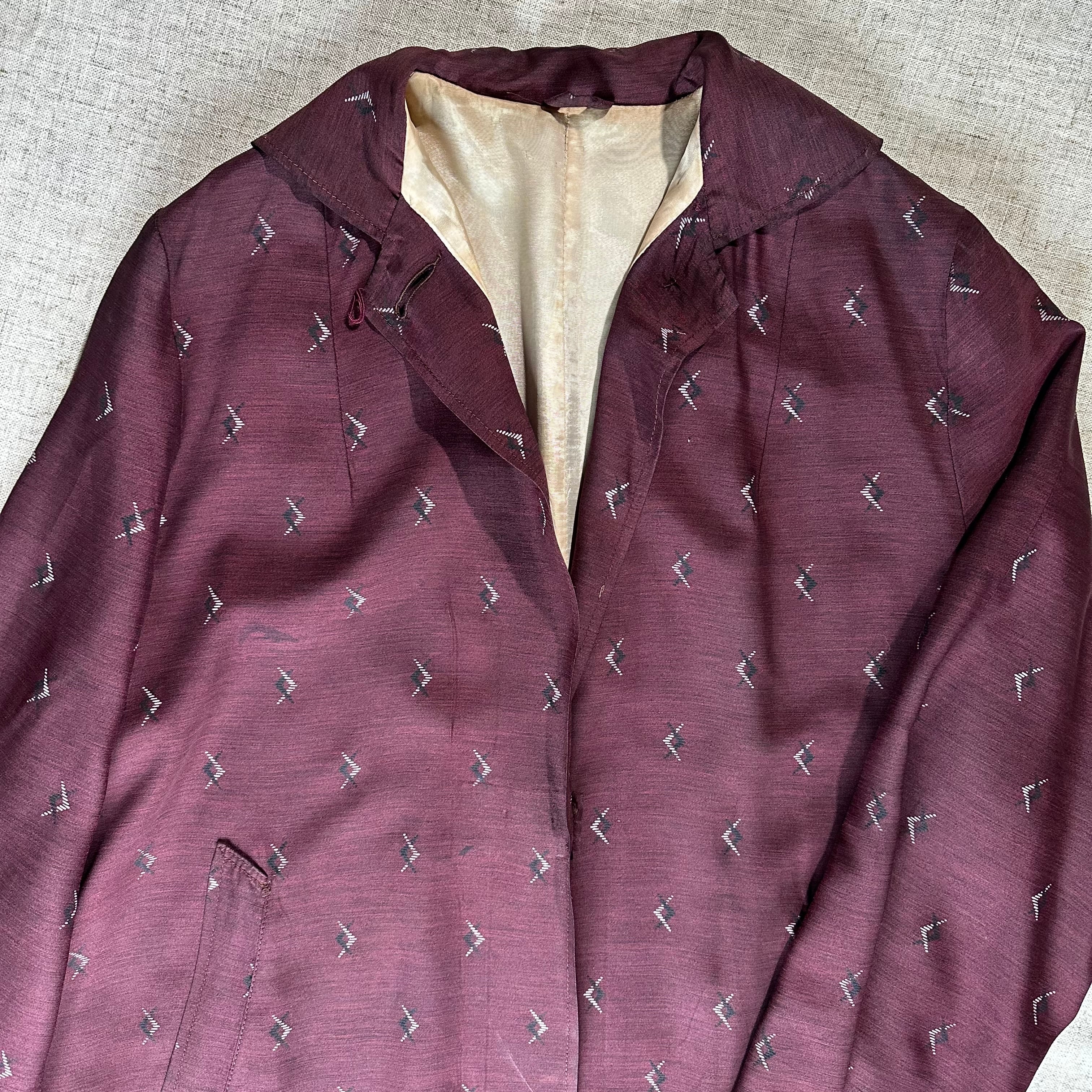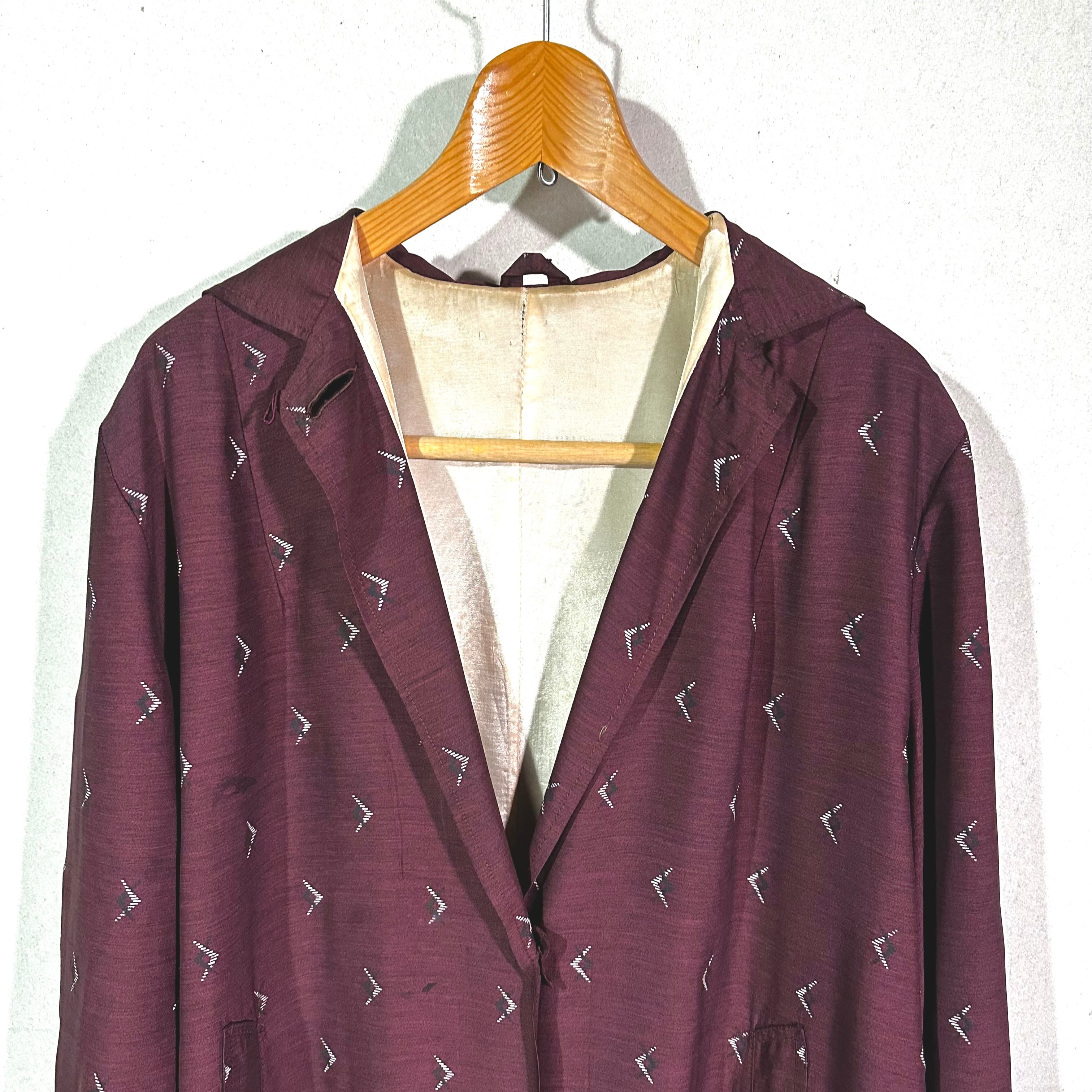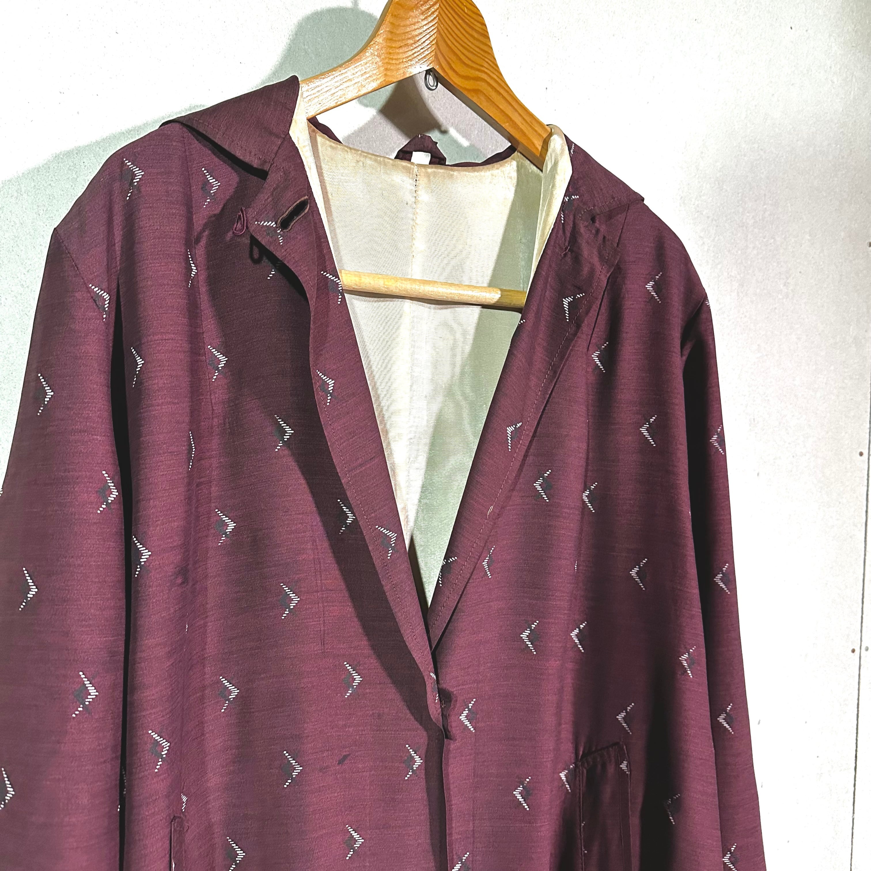 昭和期の和装生地を用いて仕立てられた、ロング丈のガウン。