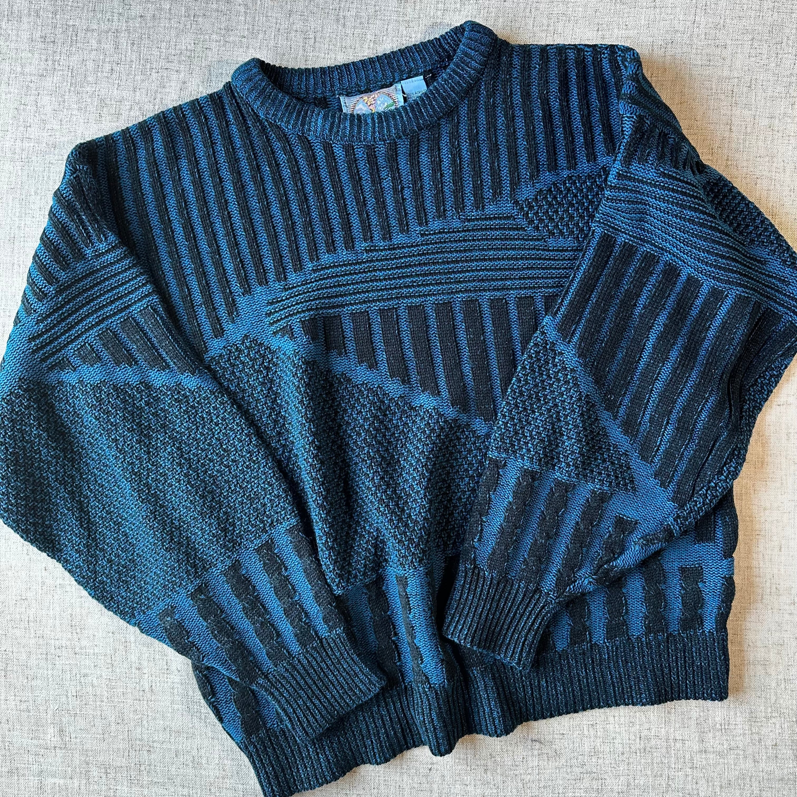 立体感のある編み地が印象的な、90年代らしいデザインニットです。