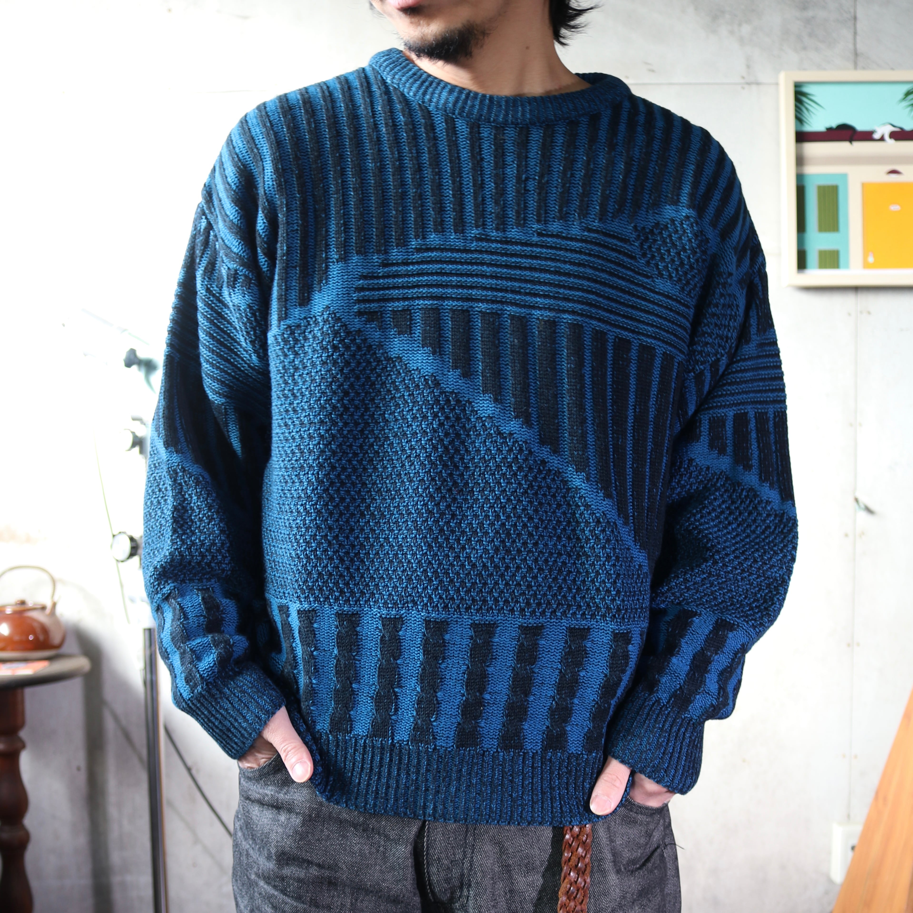 90's Design Knit Sweater / U.P.E.T.O BASIX (Unisex L)