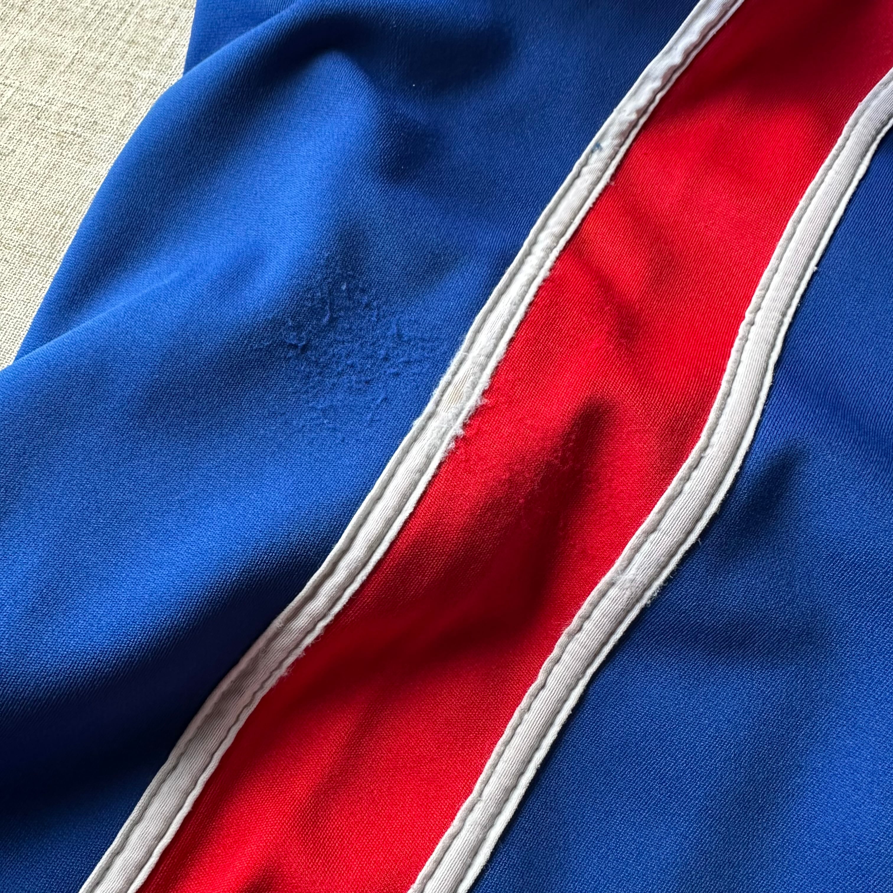 スポーツウェアと日常着の境界が曖昧だった時代の空気を感じさせるヴィンテージトラックパンツです。