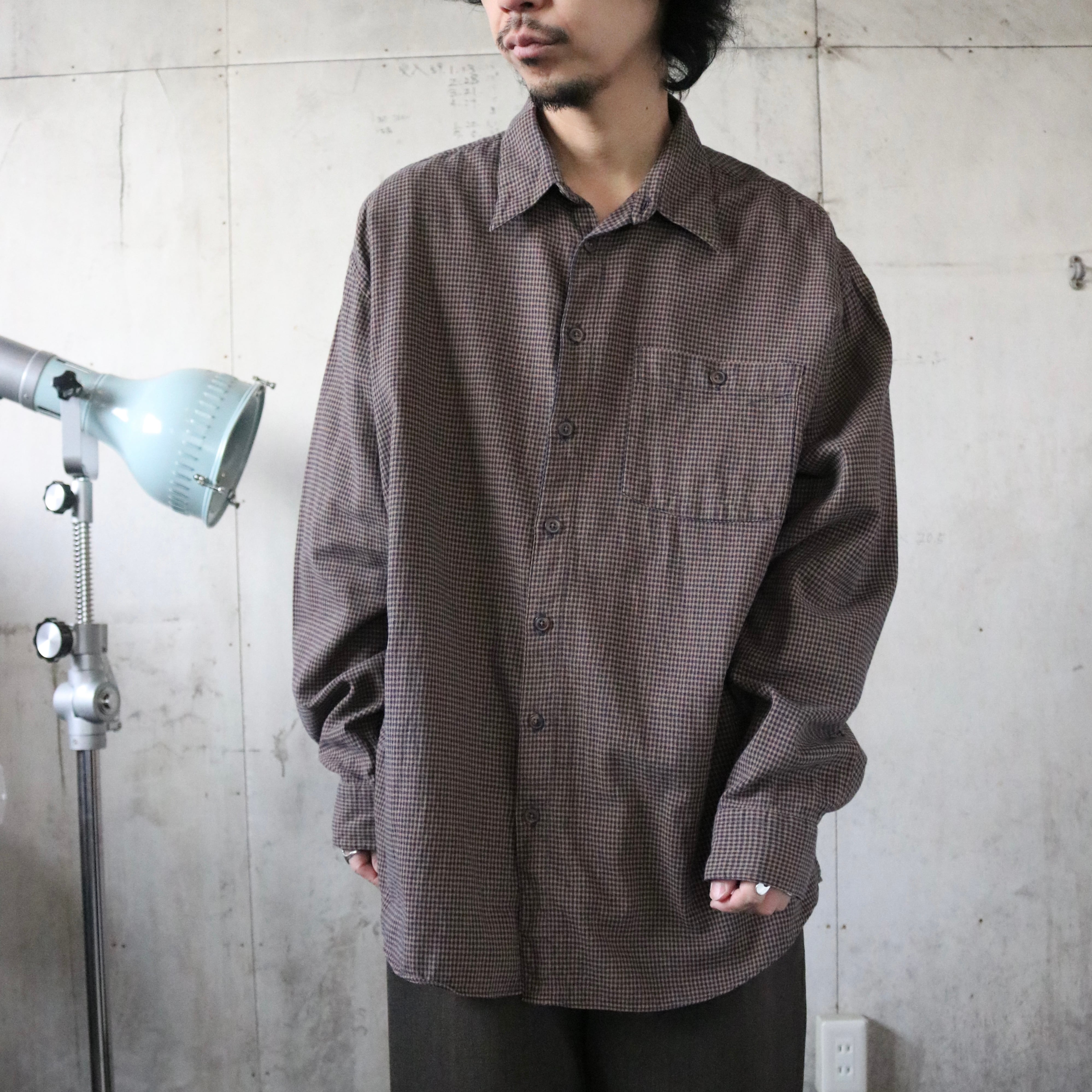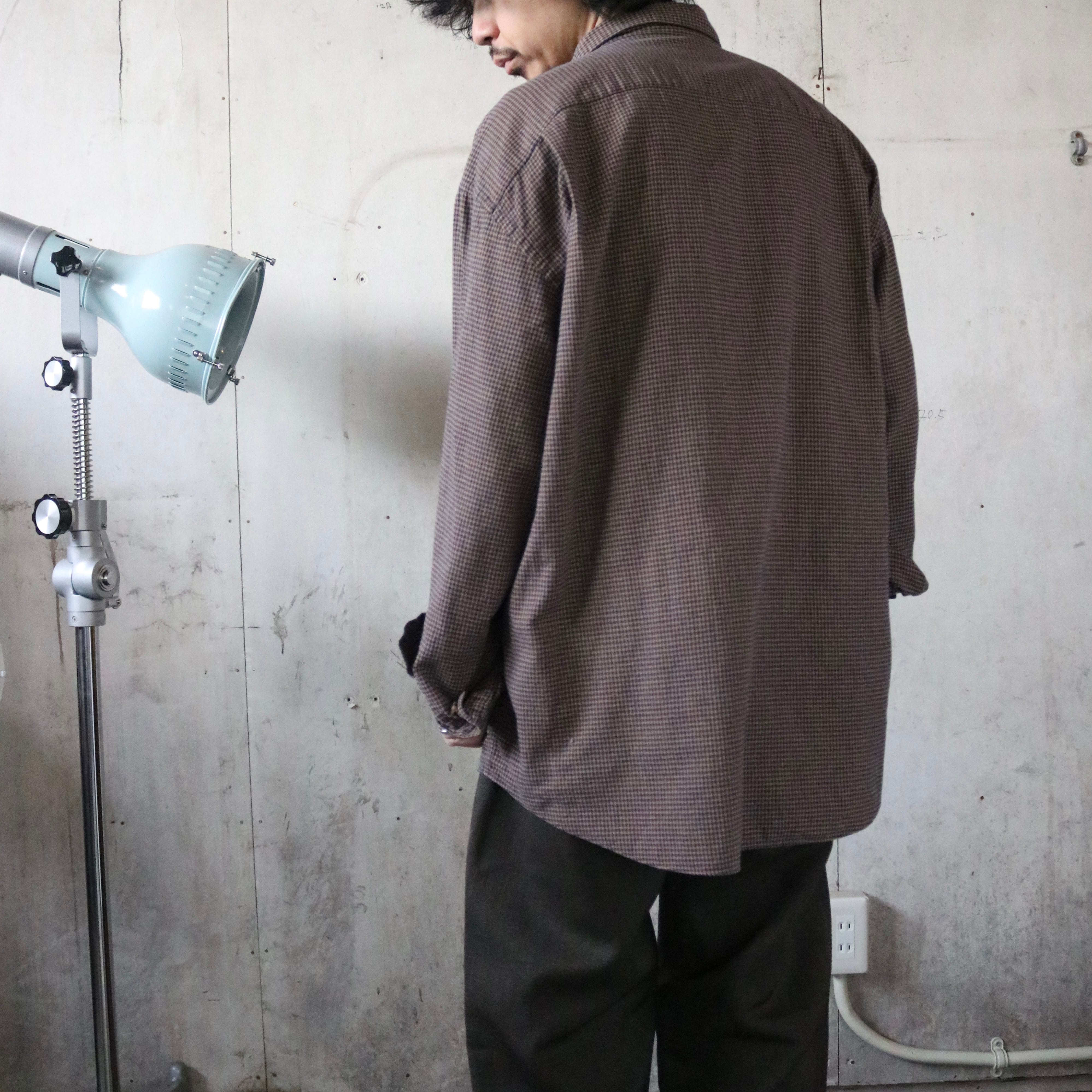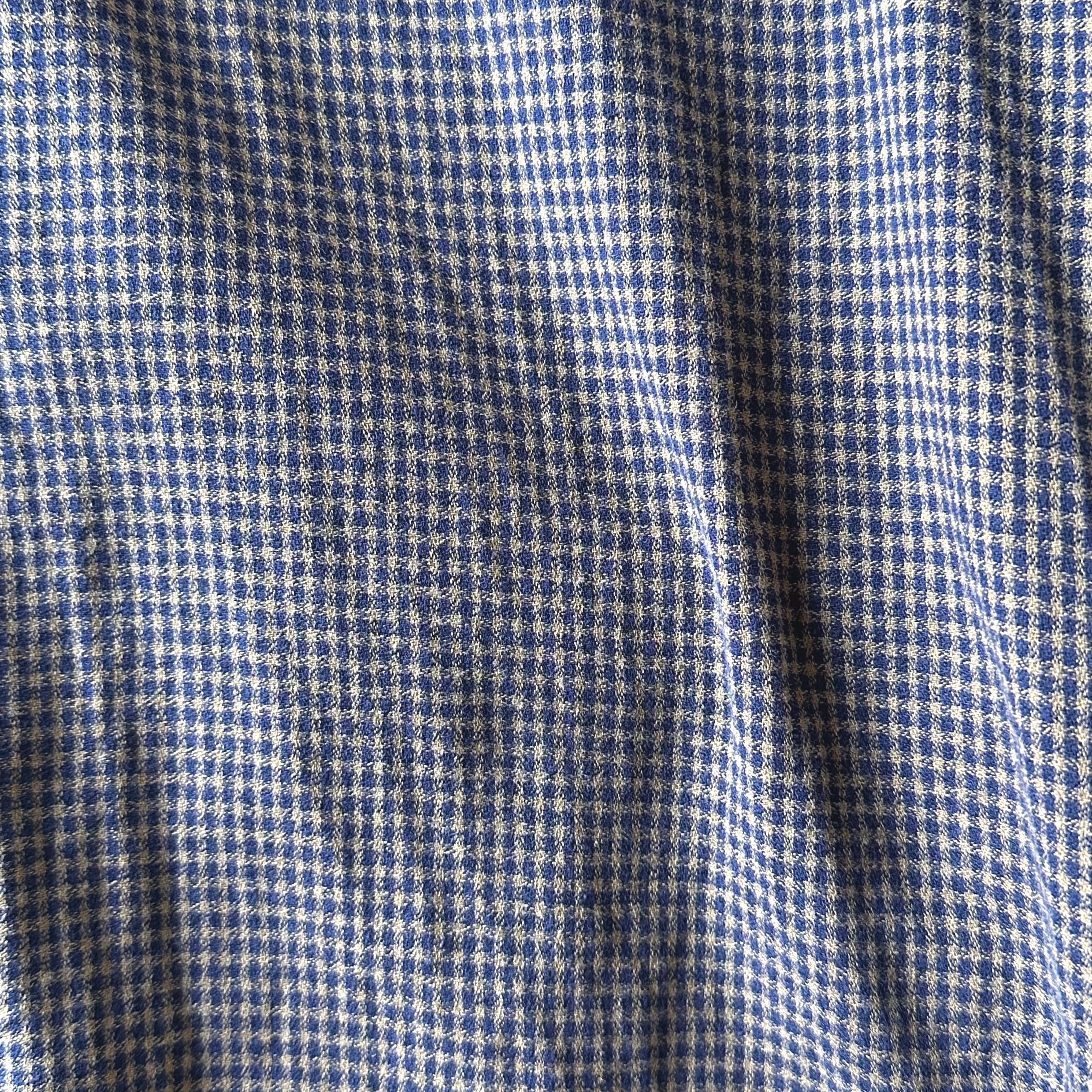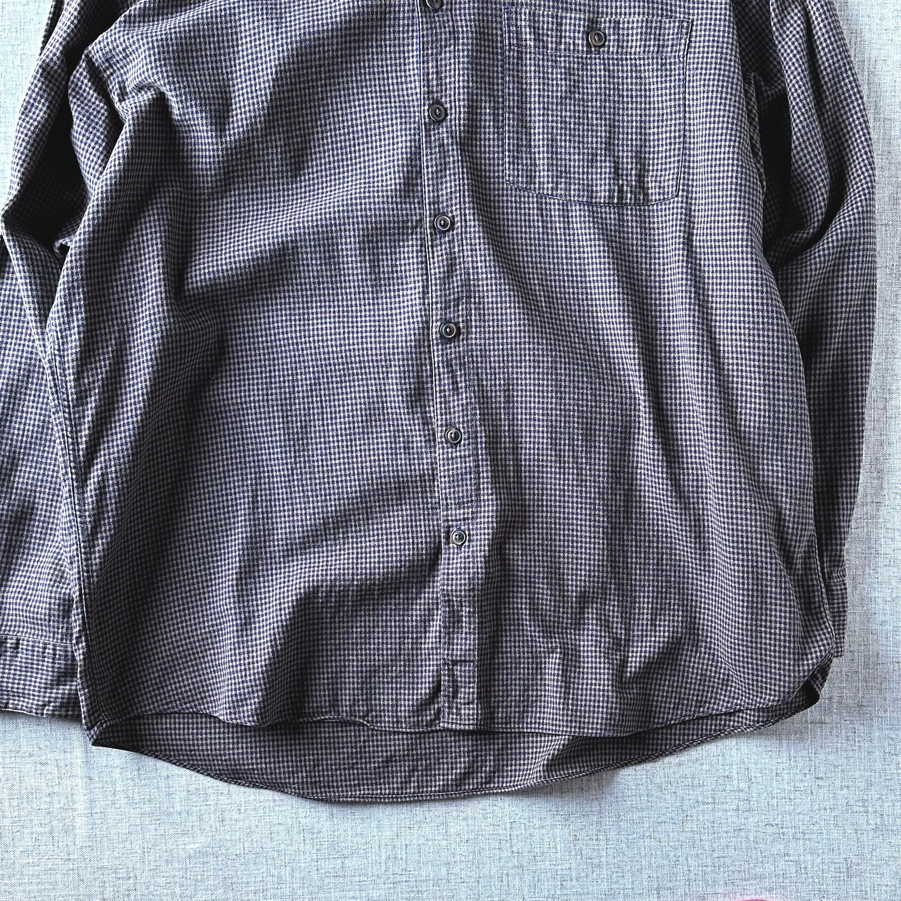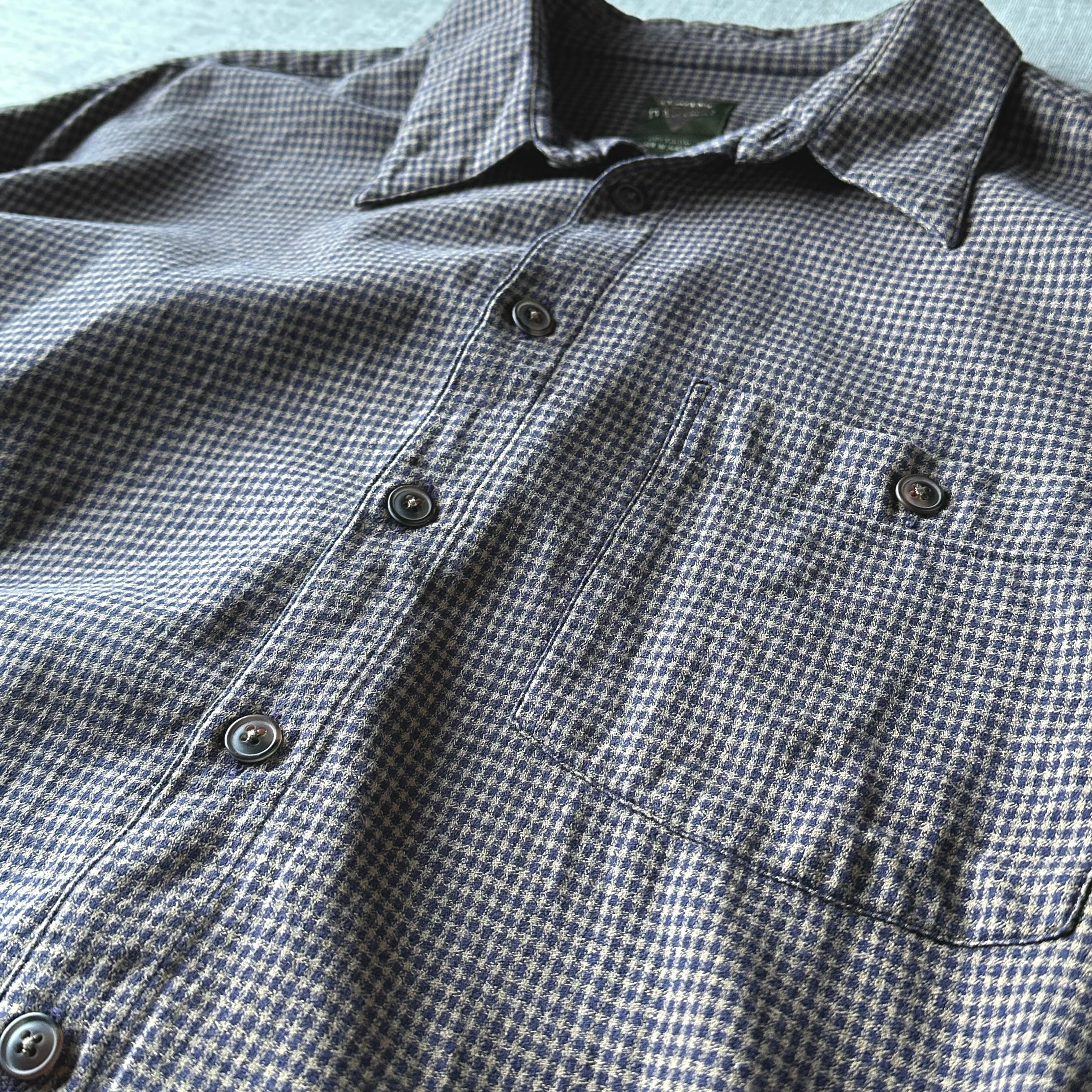 細かな千鳥格子の落ち着いたパターンと、程よい厚みのあるコットン生地が特徴の一着です。
