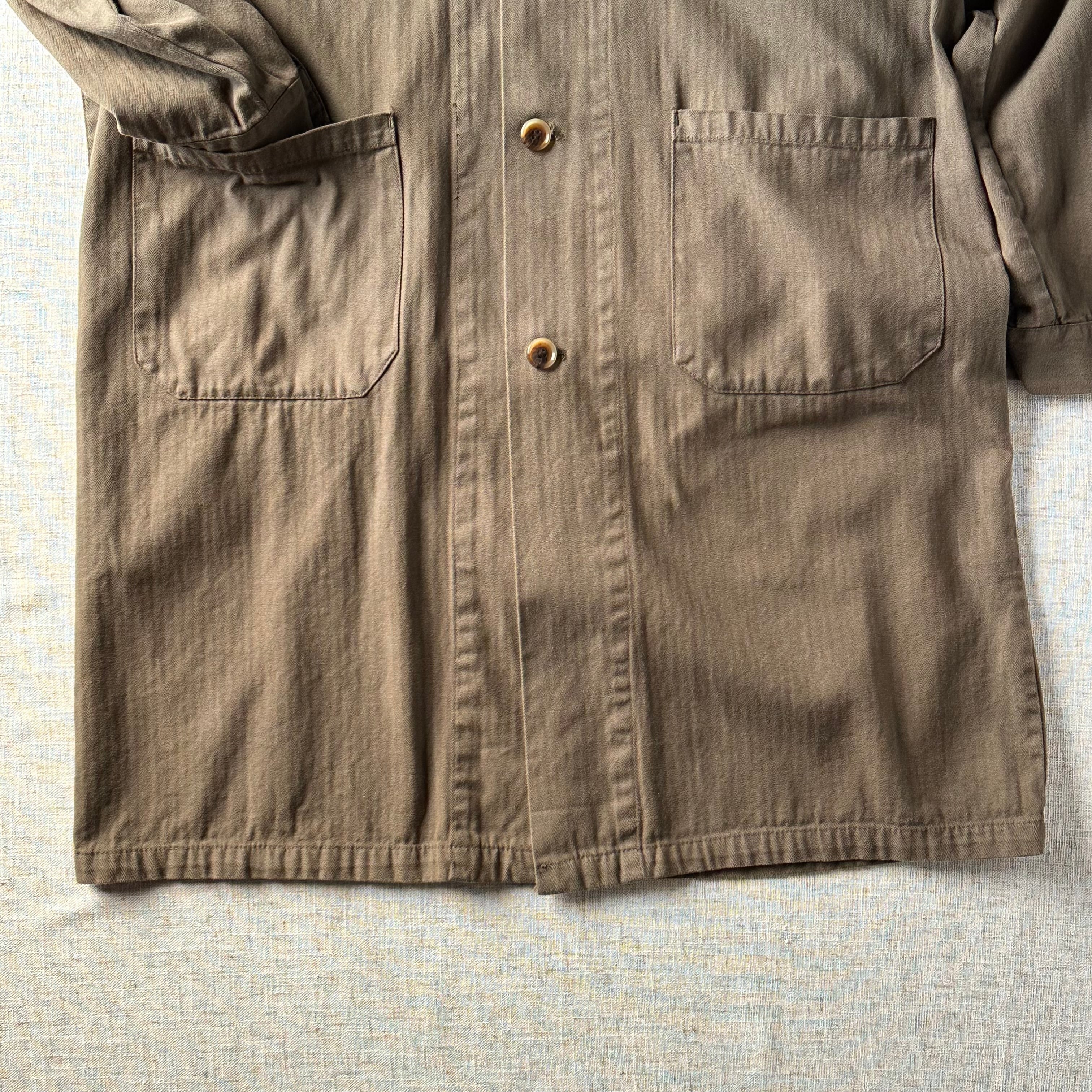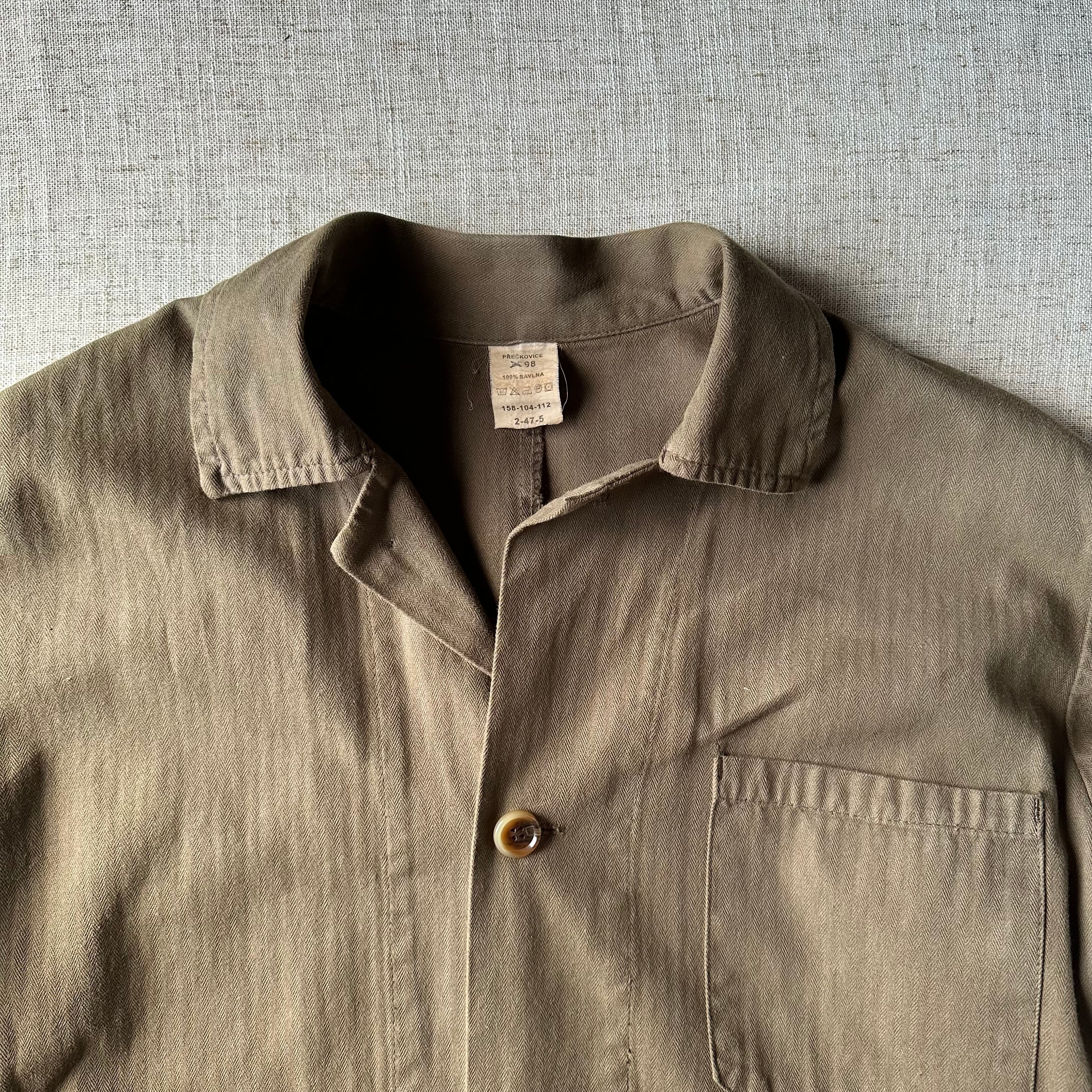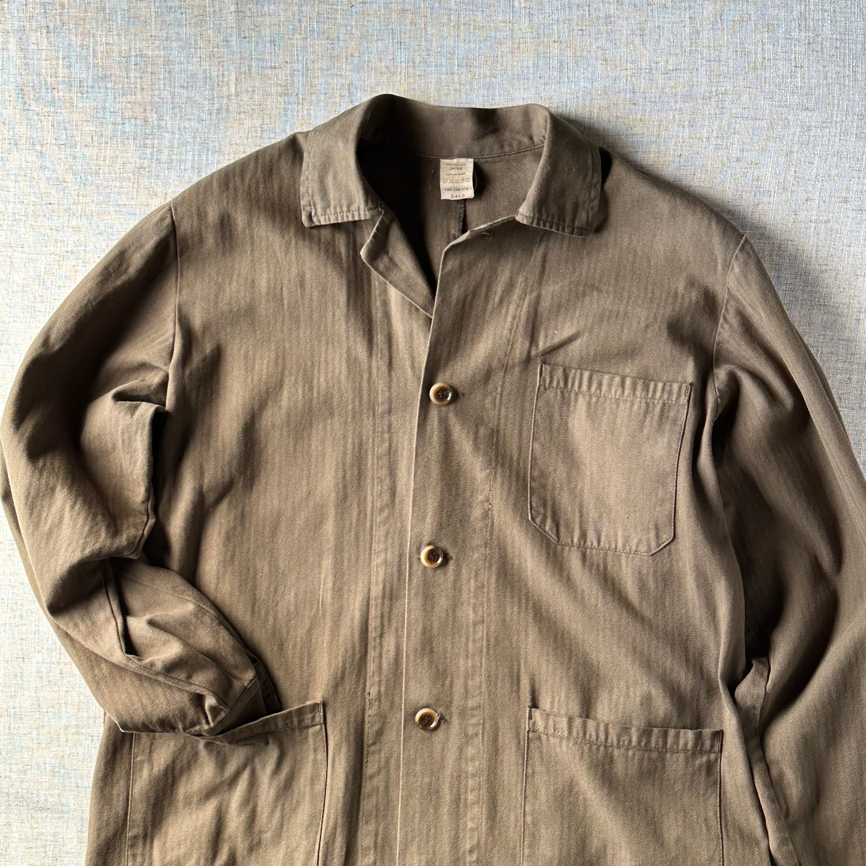 ヘリンボーン織のコットンツイル生地を使用した、東欧ワークらしい一着です。