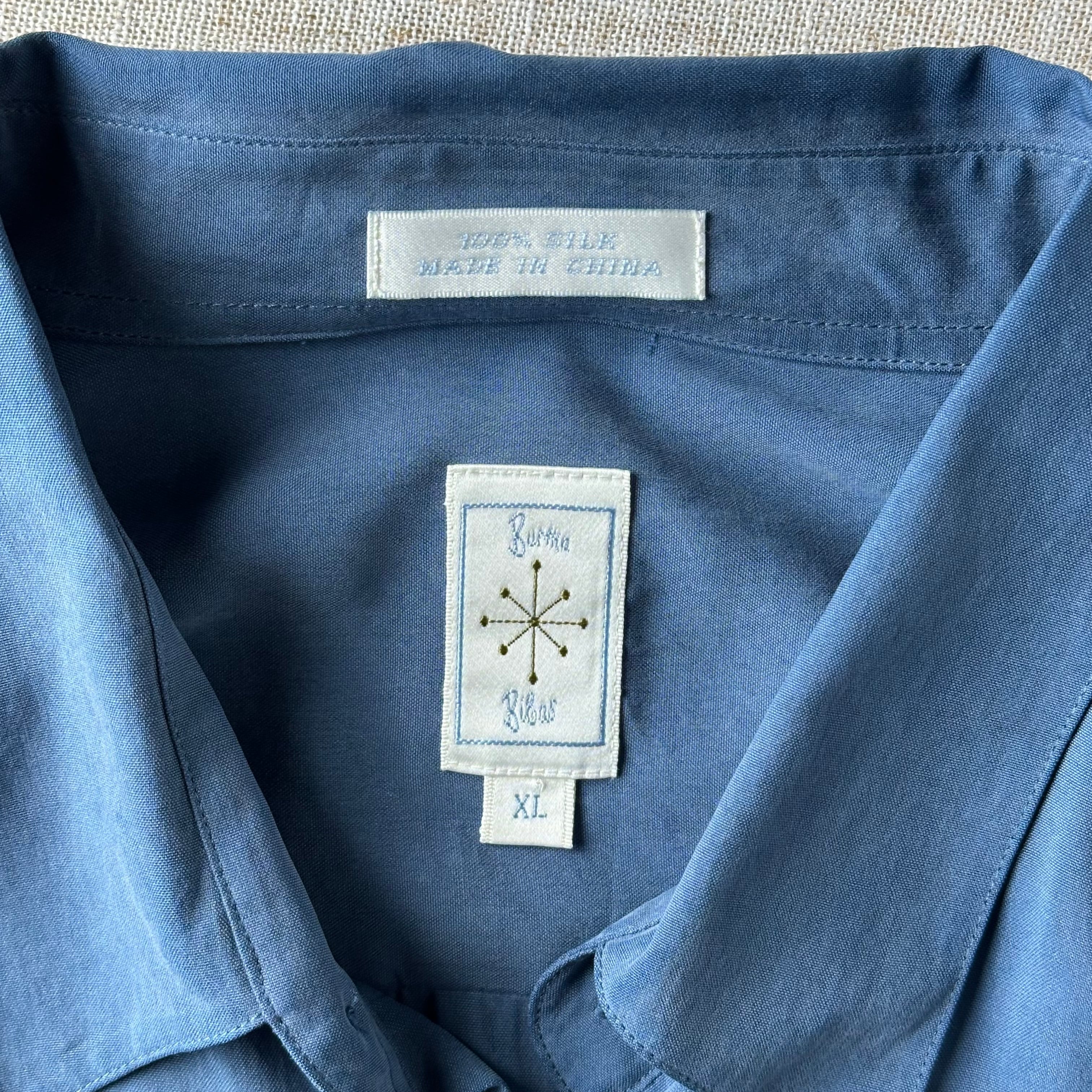 ブルーグレーの落ち着いた色味に、シルク特有のほのかな光沢。