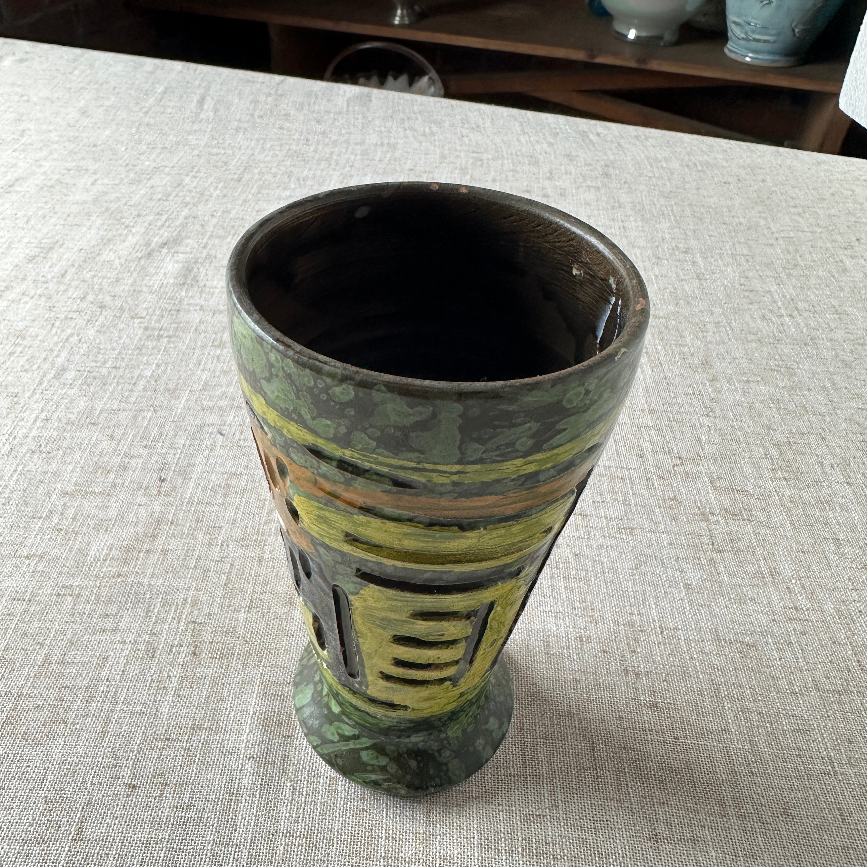 ミッドセンチュリー期らしい装飾性と、手仕事の揺らぎが同居した独特の存在感があります。